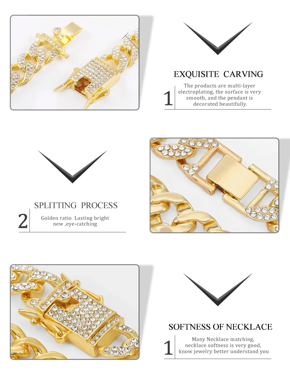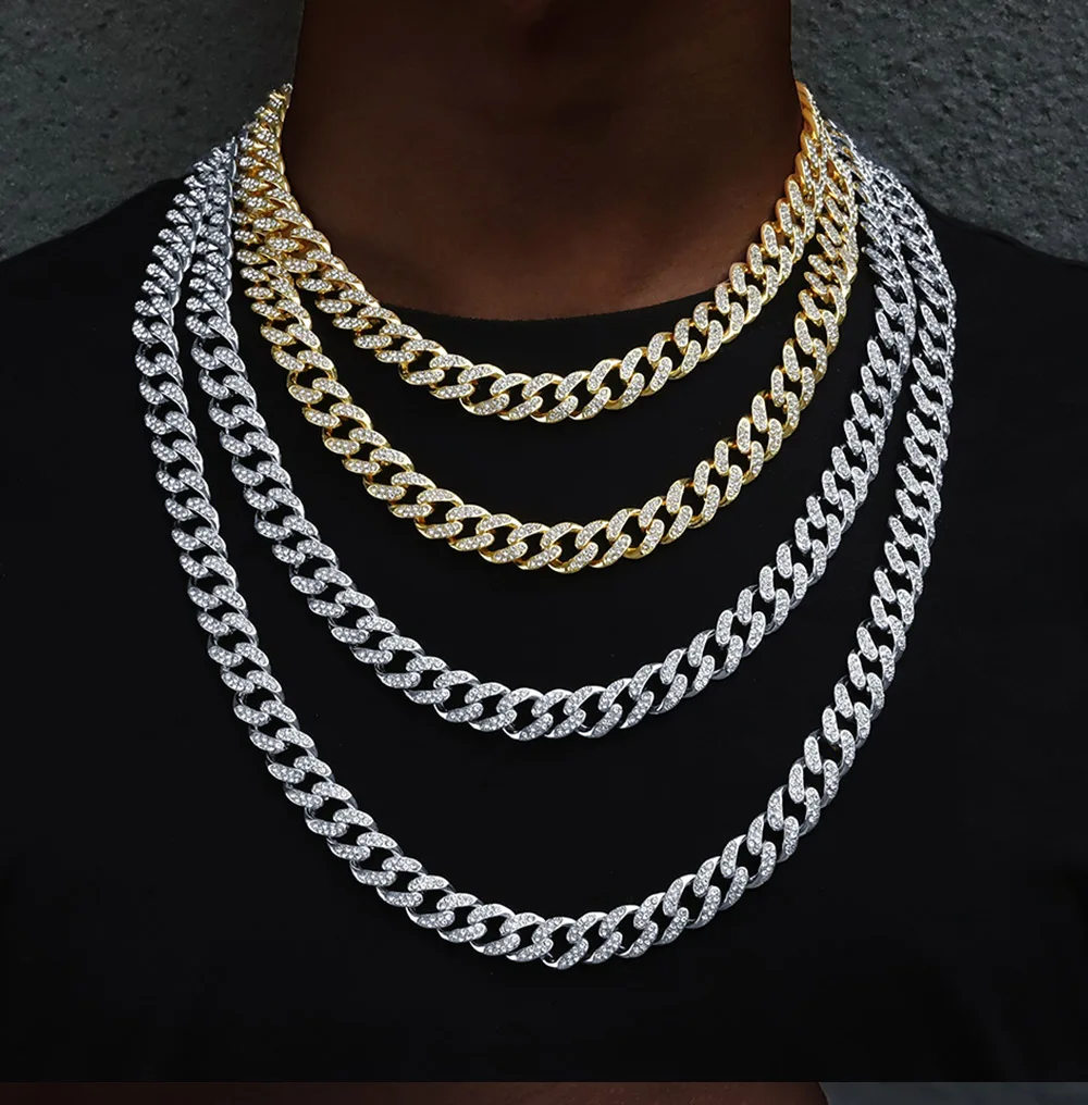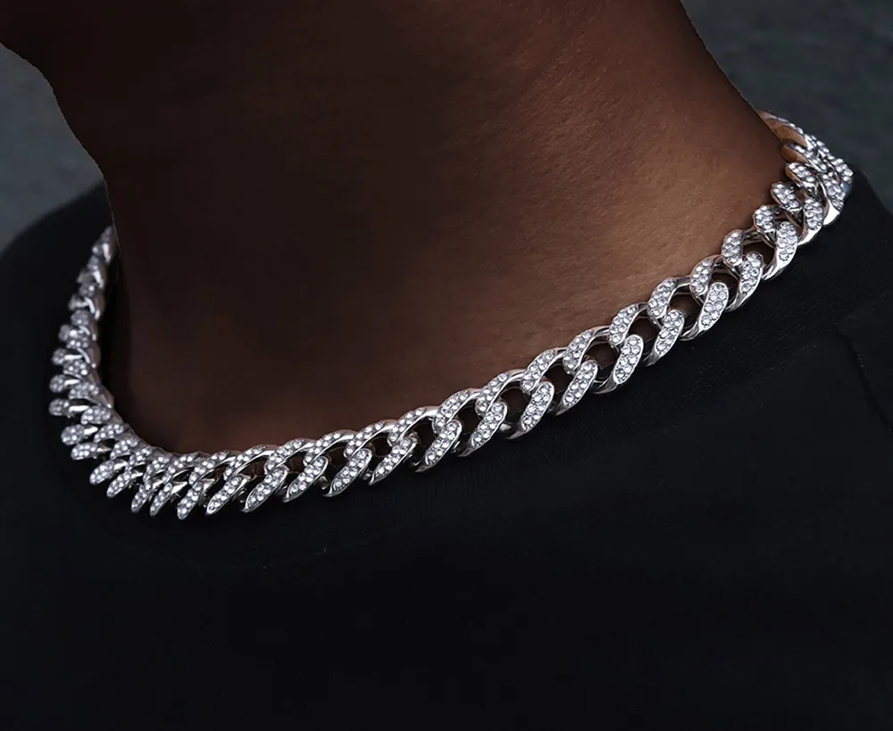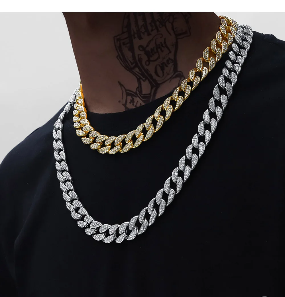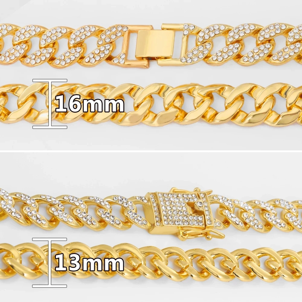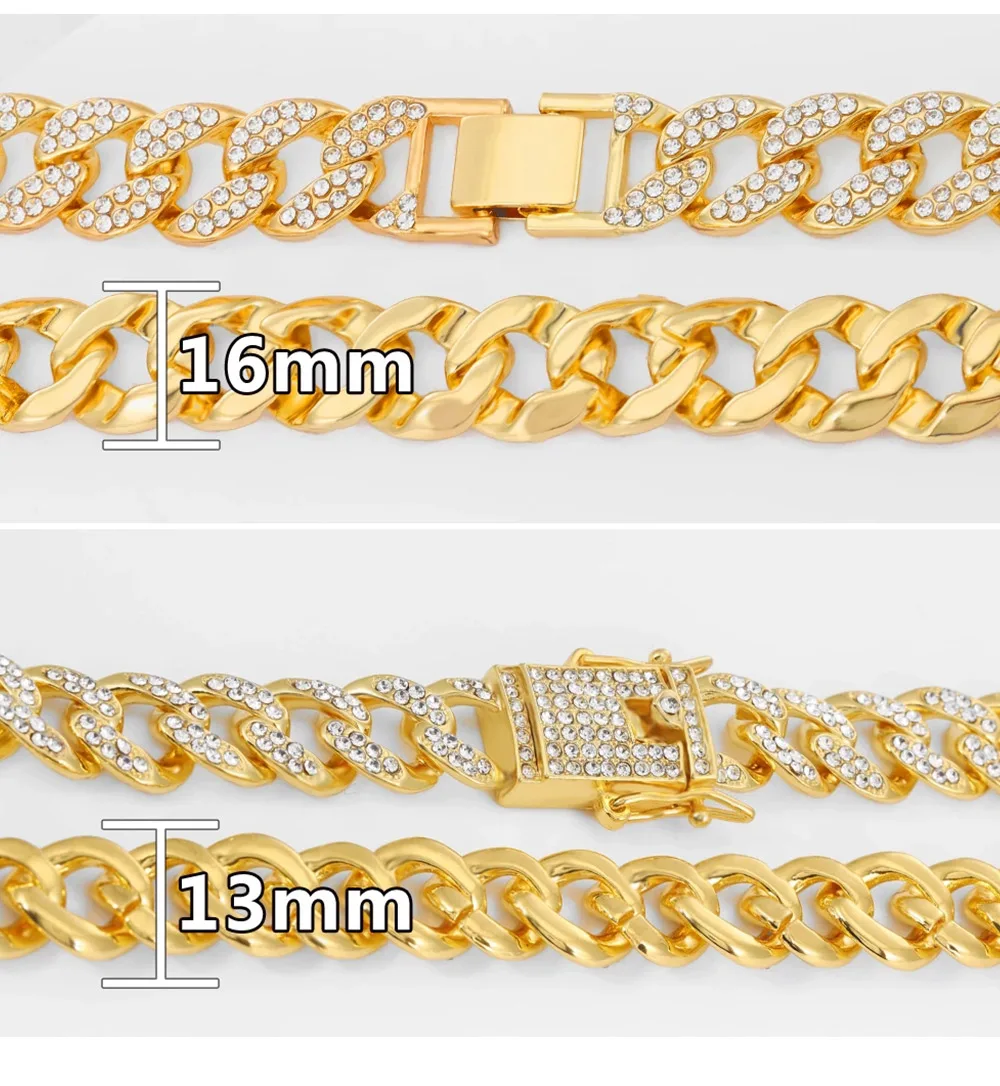Кубинская цепь в стиле хип-хоп для мужчин и женщин, ожерелье из панцирной кубинской цепи Майами серебристого цвета 16 мм, Подарочная бижутерия в стиле хип-хоп