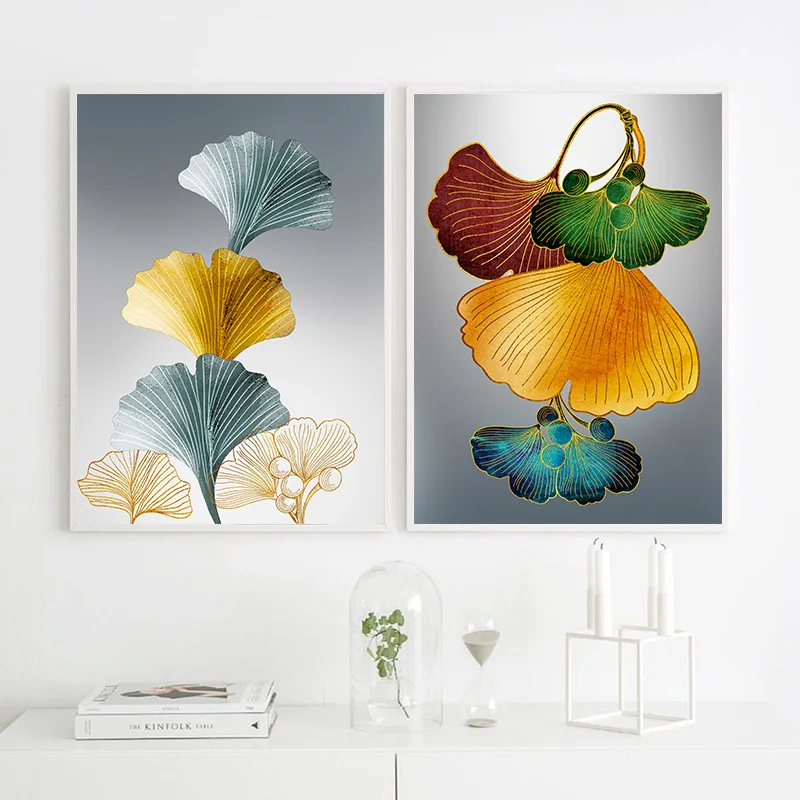 Цветные растения гинкго билоба лист Абстрактная живопись холст плак...