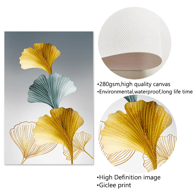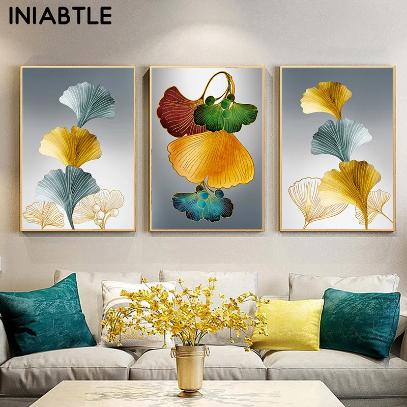 Золотая гинкго билоба, лист, растение, Абстрактная Картина на холсте, Постер, скандинавский настенный художественный принт, современная картина, гостиная, украшение для дома