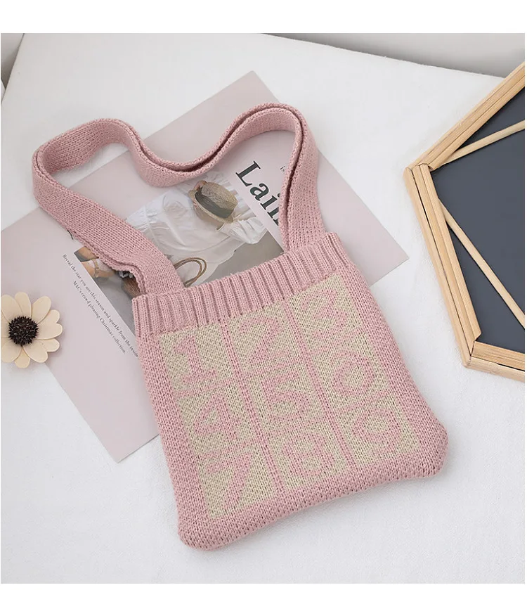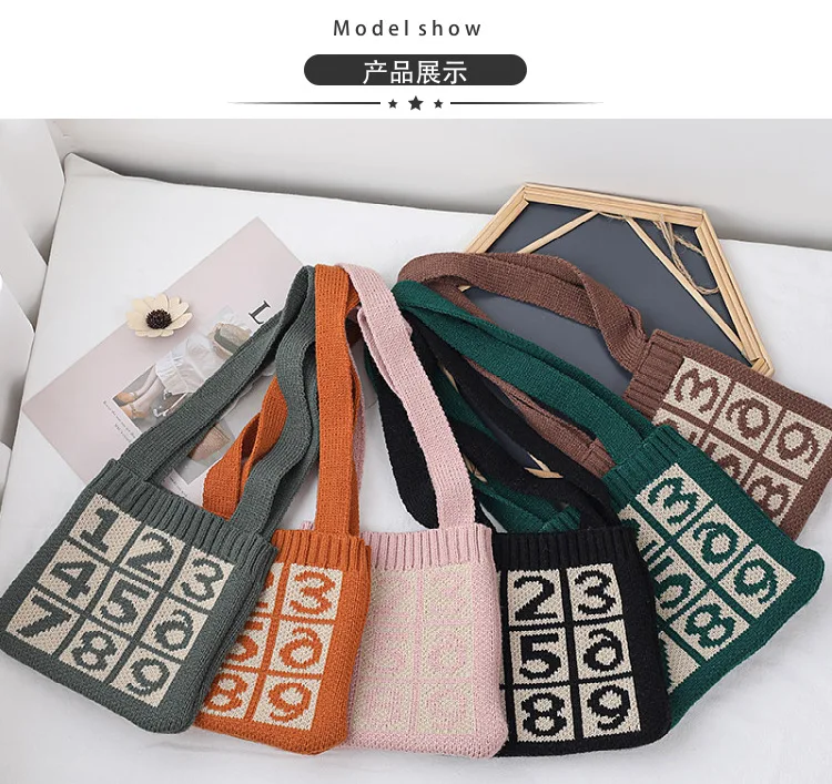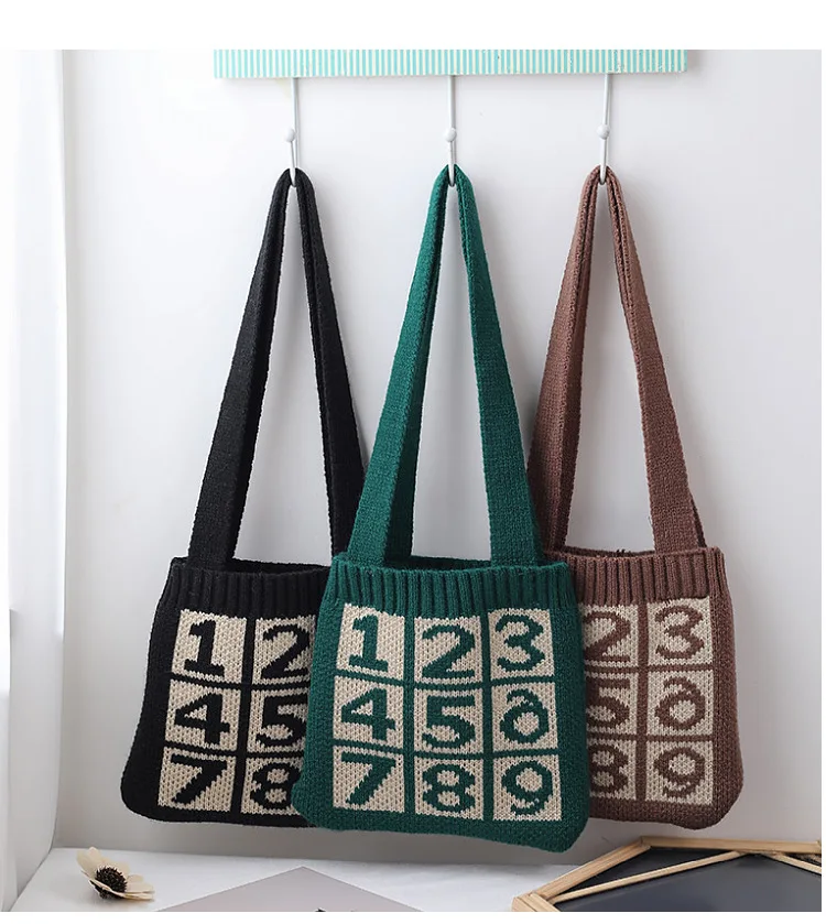 Детская маленькая сумка для осени и зимы, милая шерстяная вязаная косичка в клетку с цифрами, кошелек для монет, модные аксессуары, подарки, оптовая продажа