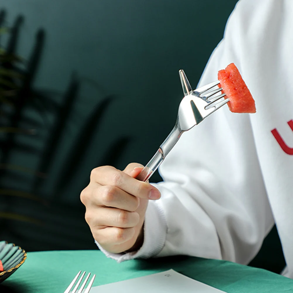 Нержавеющая сталь арбуз фрукты вилка для резки ложка портативная посуда фрукты дыня вилка Slicer Резак кухонные принадлежности