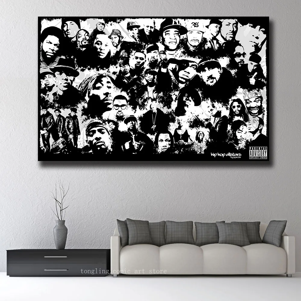 Граффити искусство черный женские парусиновые настенные картины худ...
