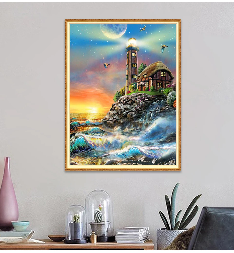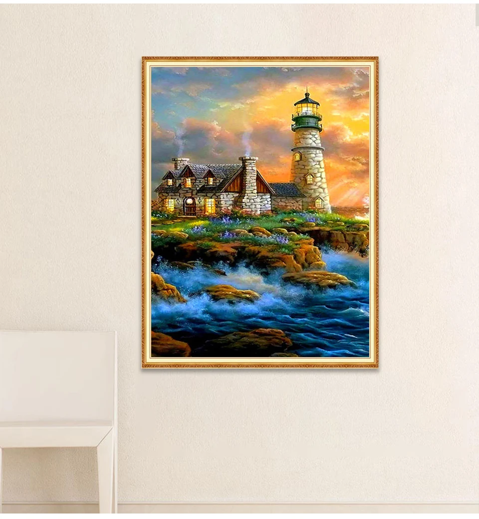 Алмазная 5D картина сделай сам, Набор для вышивки крестиком с изображением маяков, квадратная вышивка, пейзаж, мозаика, художественные картины стразы, Декор