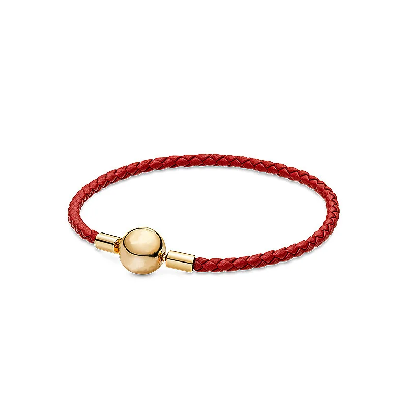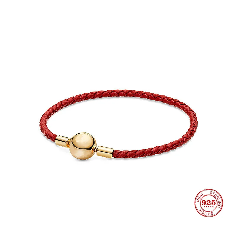 Женский браслет из серебра 925 пробы, золотистый кожаный шнурок, кр...