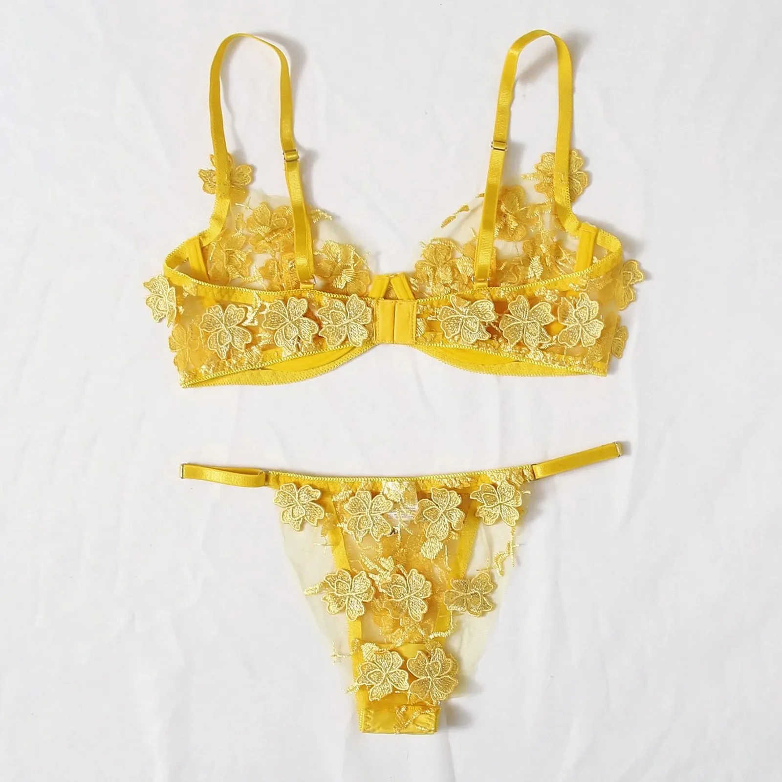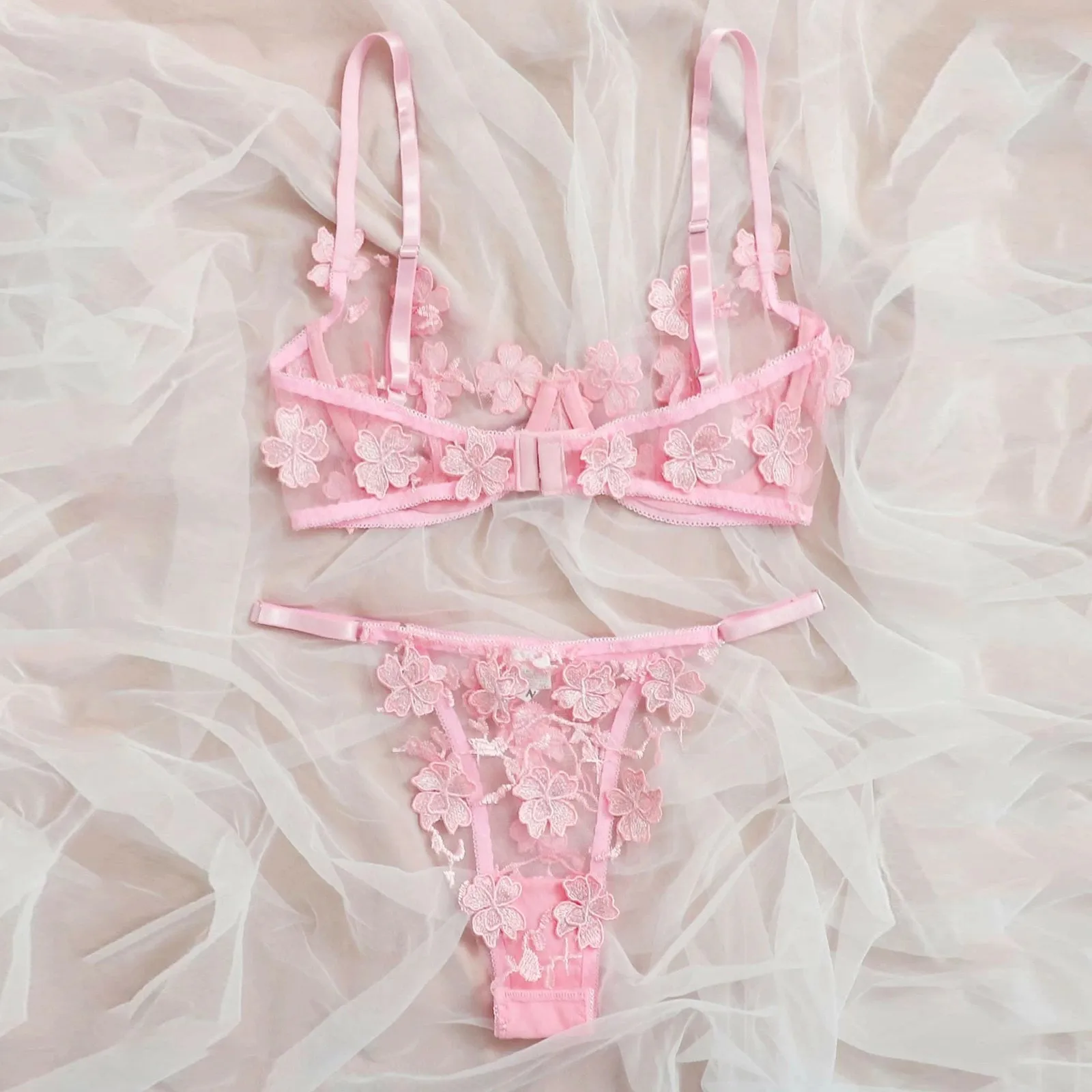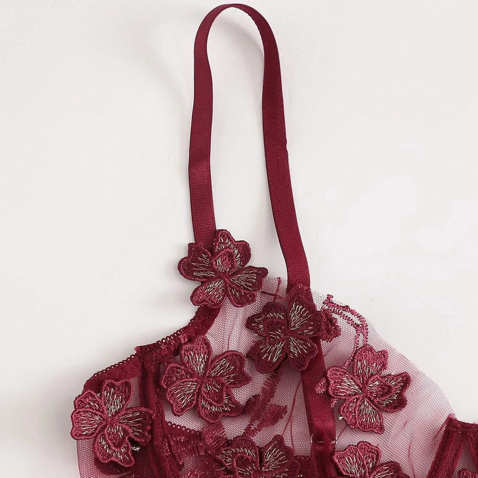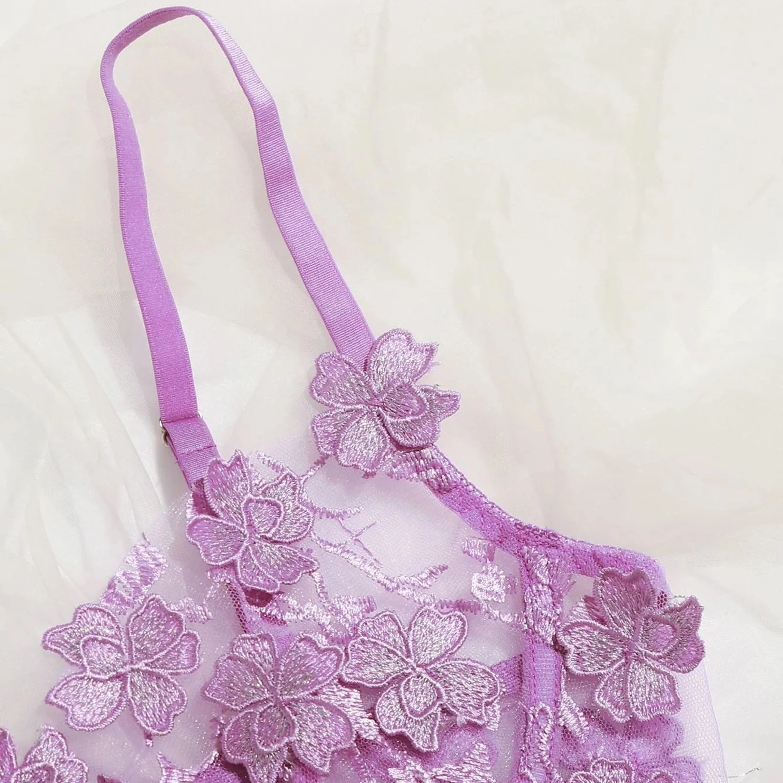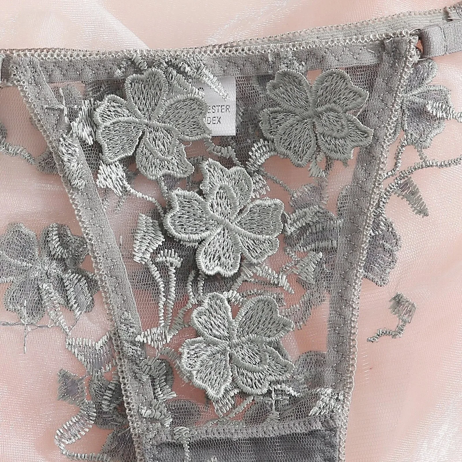 Эротическое нижнее белье, сексуальный костюм, прозрачный кружевной бюстгальтер, стринги, Женский комплект нижнего белья, порно, Цветочная вышивка, сексуальная женская одежда