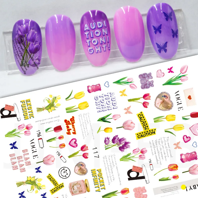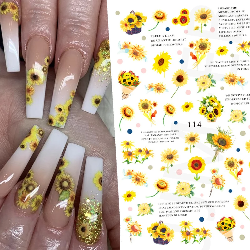 Наклейки для ногтей, декоративная Гортензия, тюльпан, Подсолнух, см...