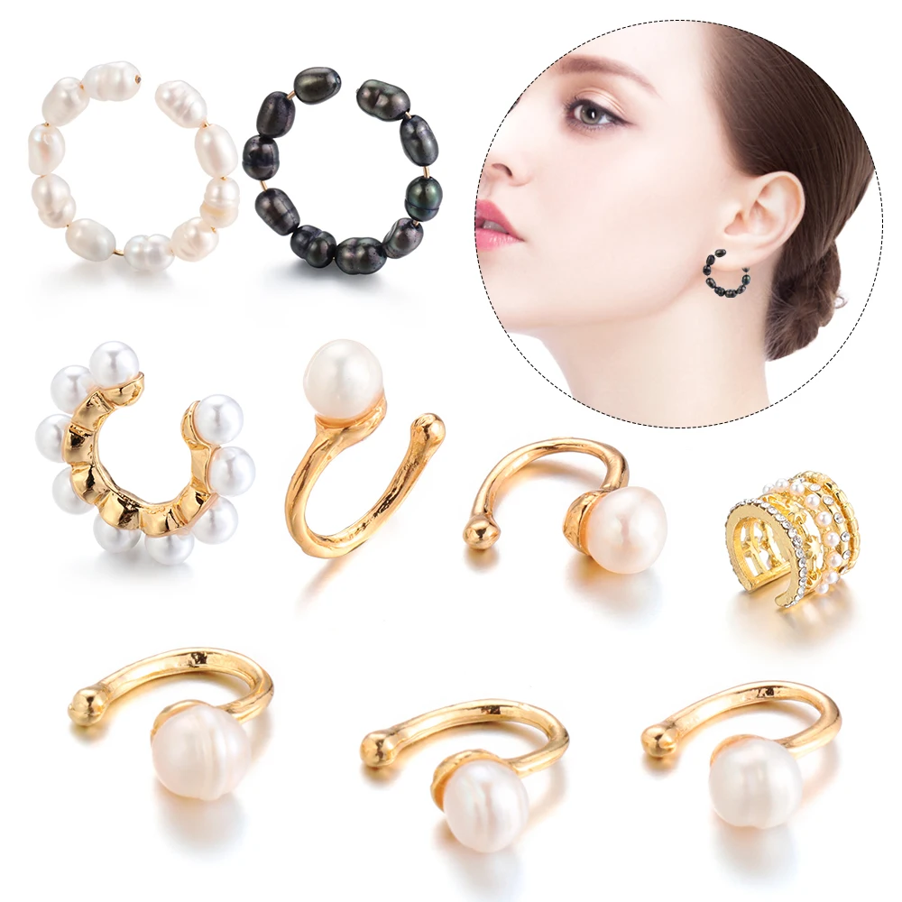 Женские циркониевые серьги-каффы для ушей без проколов жемчуга клипса для ушей с имитацией раковины серьги для пирсинга с жемчугом женские серьги Модные аксессуары ювелирные изделия
