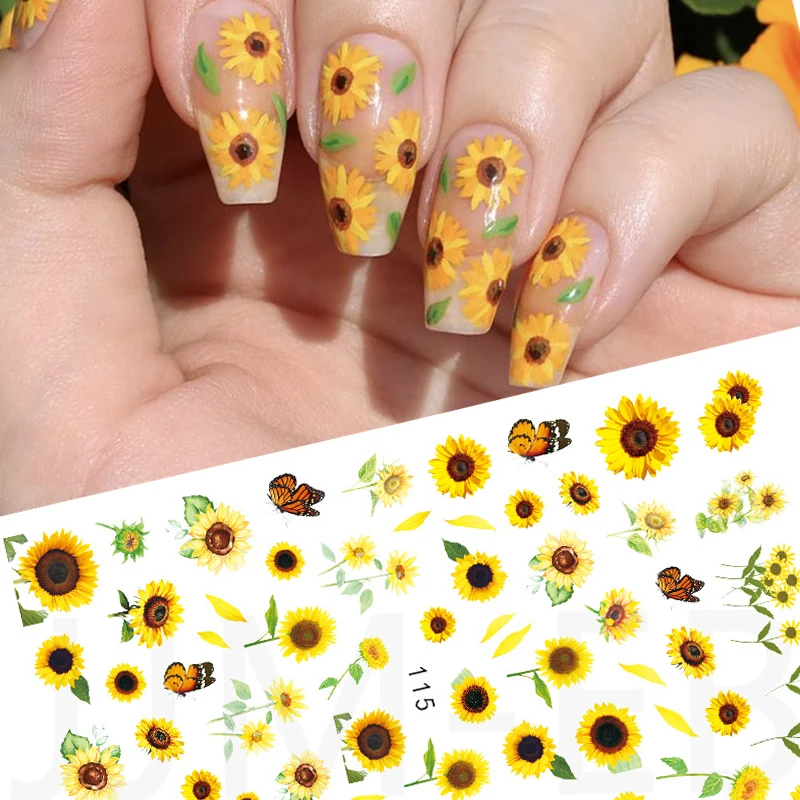 3D наклейки для ногтей, модный дизайн подсолнуха, клейкий декор для...