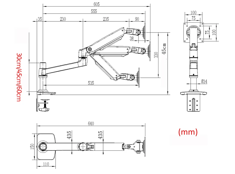 Установка: Настольный зажим 2-9 см или крепление втулки 1-6 см (пожалуйста, свяжитесь с нами для крепления втулки 6-14 см)