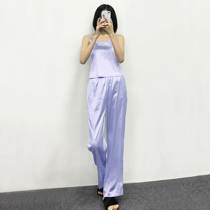 Женская пижама, комплект из 2 предметов, атласная пижама с открытой спиной и шортами, черная Пижама с брюками, Свободная Домашняя одежда, одежда для сна, женские комплекты