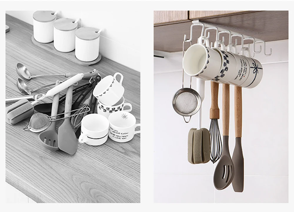 Большая емкость 12 крючков, можно разместить на кухне, легко получить доступ к кухонной утвари, наслаждаться кухонной жизнью
