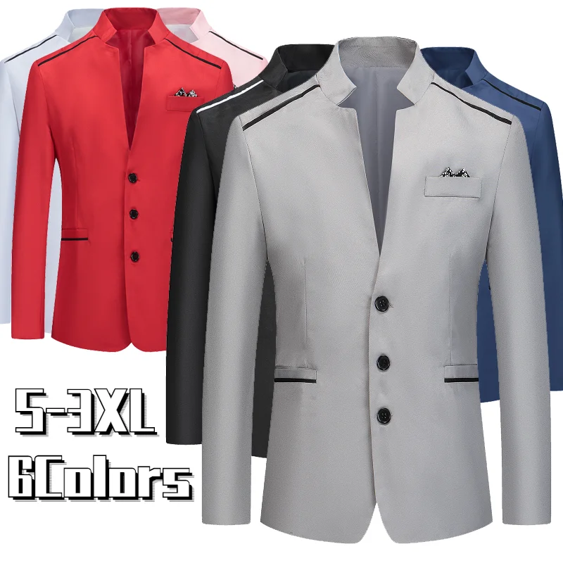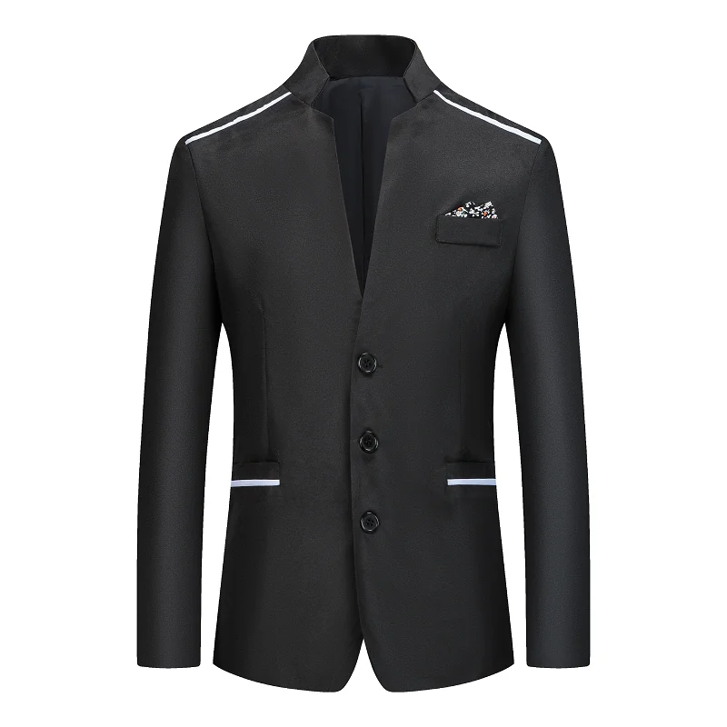 Новый модный мужской костюм однотонный приталенный Универсальный костюм с воротником-стойкой пиджак деловой офисный костюм