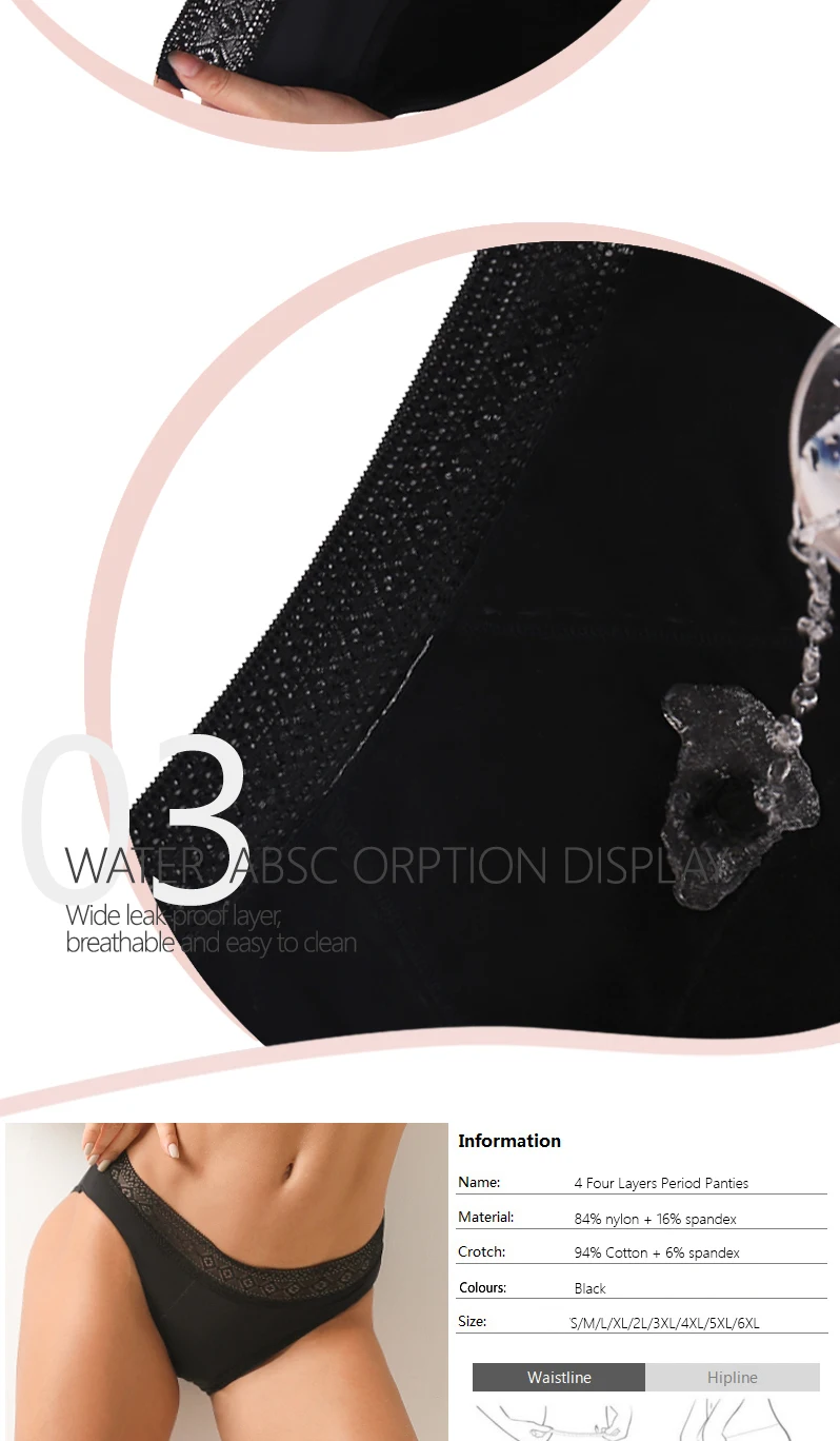 4 слоя, Новые герметичные менструальные трусики, физиологические антибактериальные трусы, сексуальное кружевное нижнее белье, женские трусики