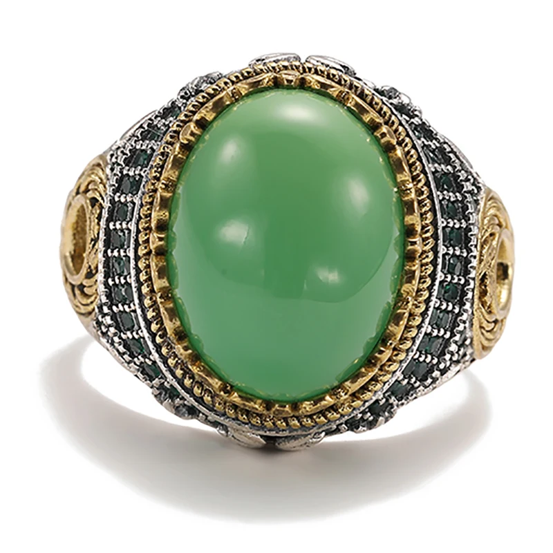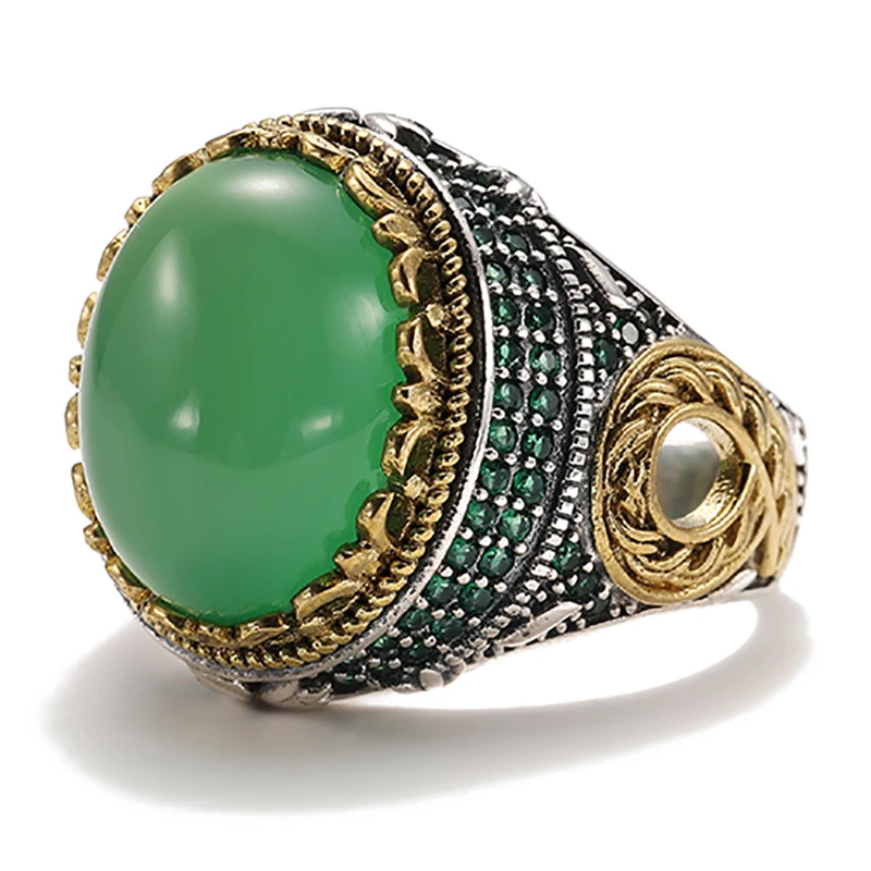 Кольцо-печатка с зеленым камнем в турецком стиле для мужчин и женщин