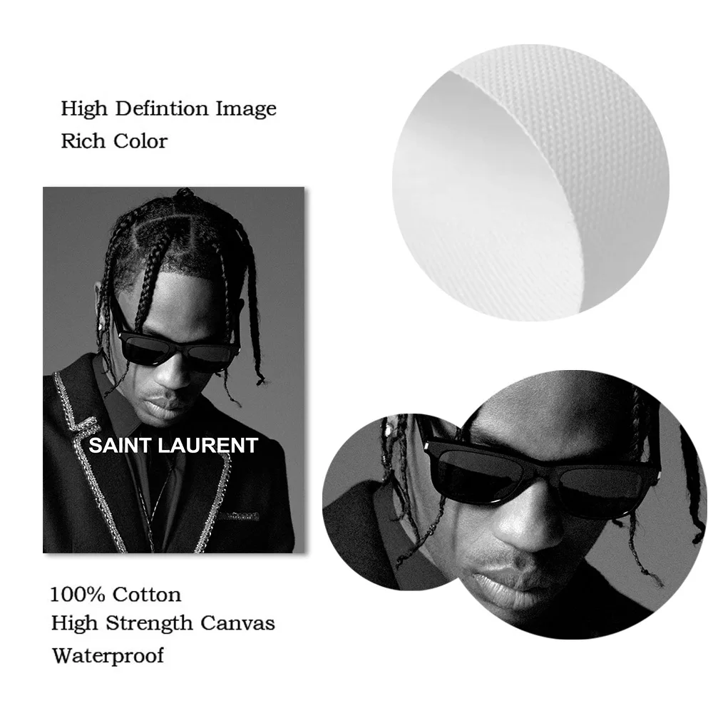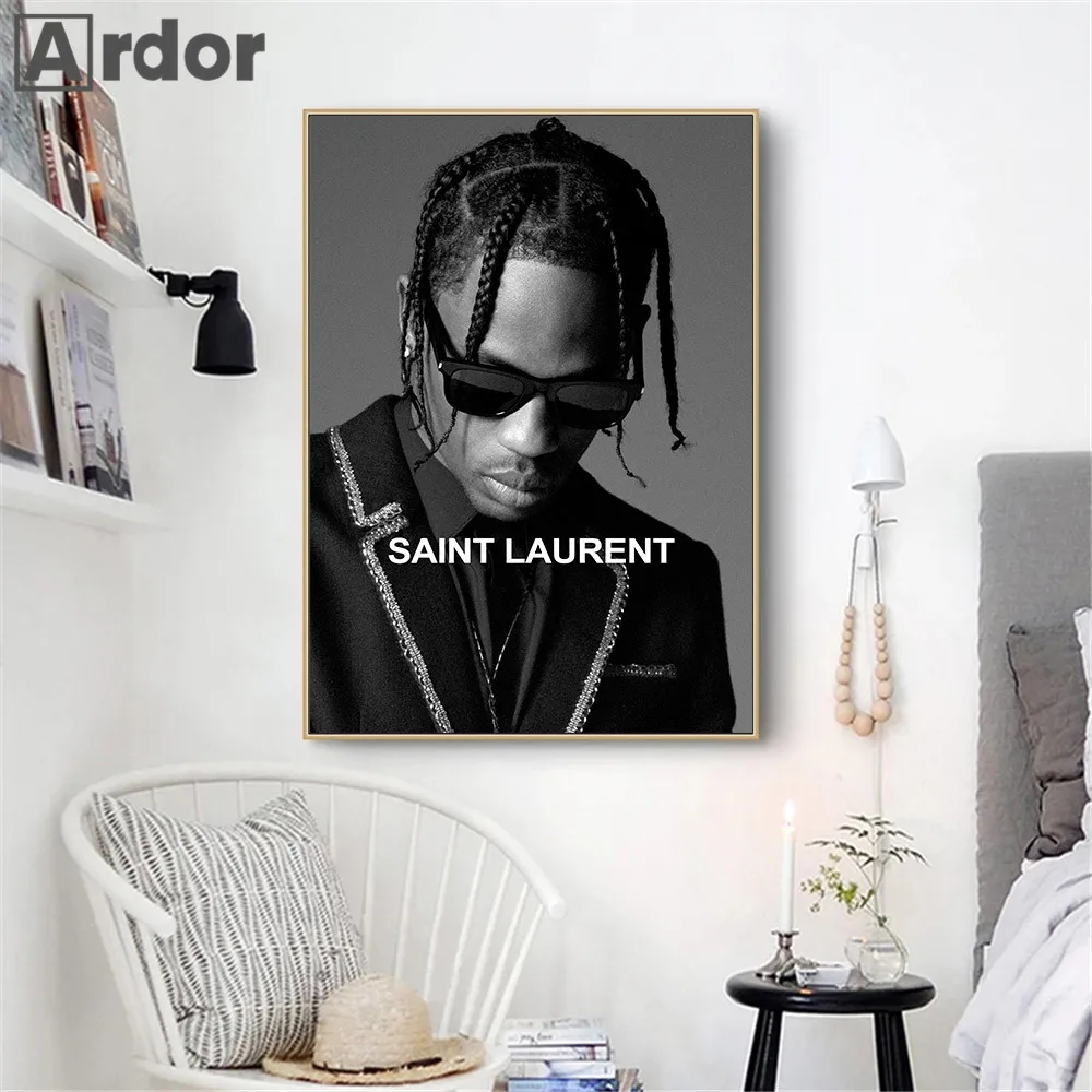 Плакат на холсте Черно-белый, с принтом Тревиса Скотта, рэпа в стиле хип-хоп, модная Настенная картина в стиле Сен-Лорана, картины для домашнего декора