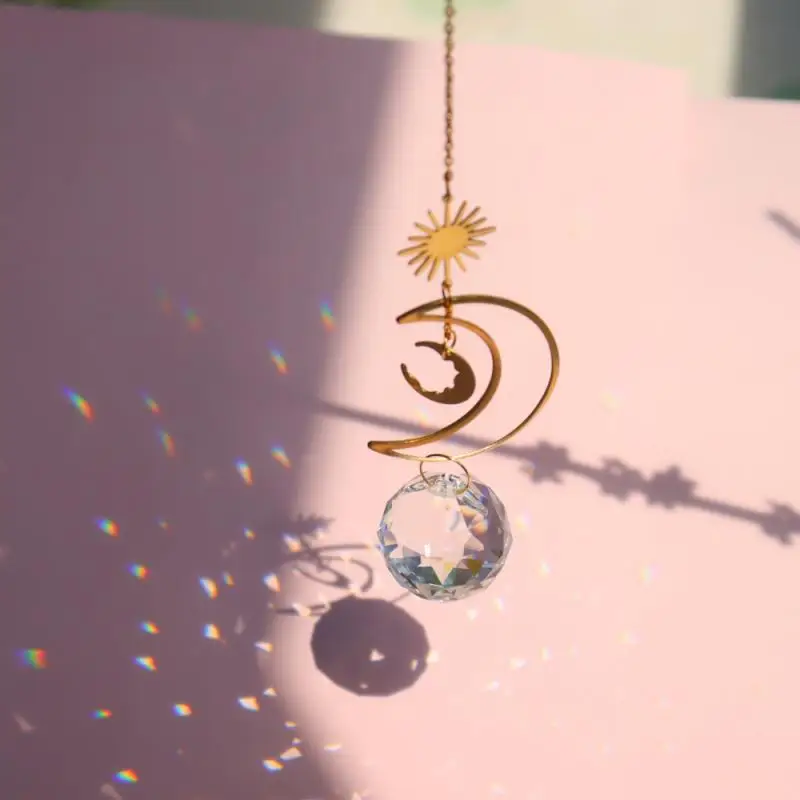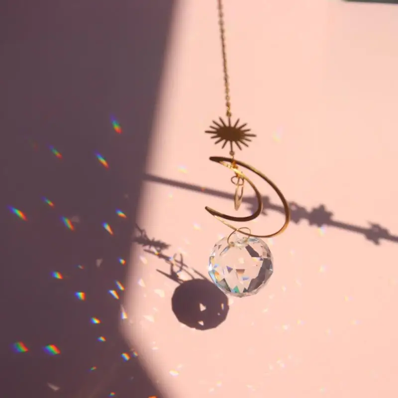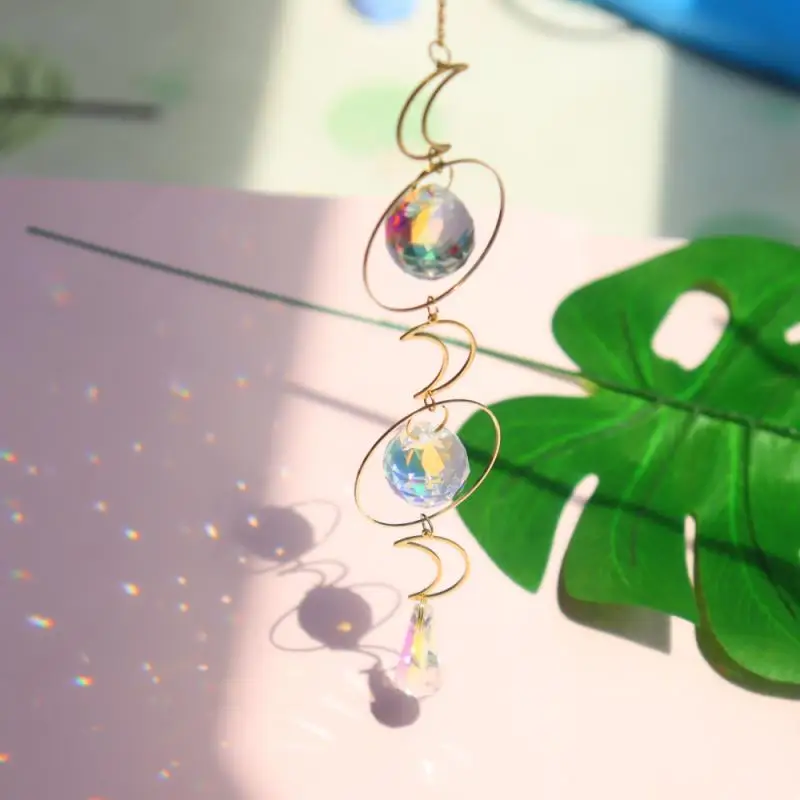 Хрустальная подвеска в виде колокольчика, звезды, Луны, солнца, Ловец снов с покрытием, красочные бусины, подвесная капля для улицы, помещения, сада, ветровка
