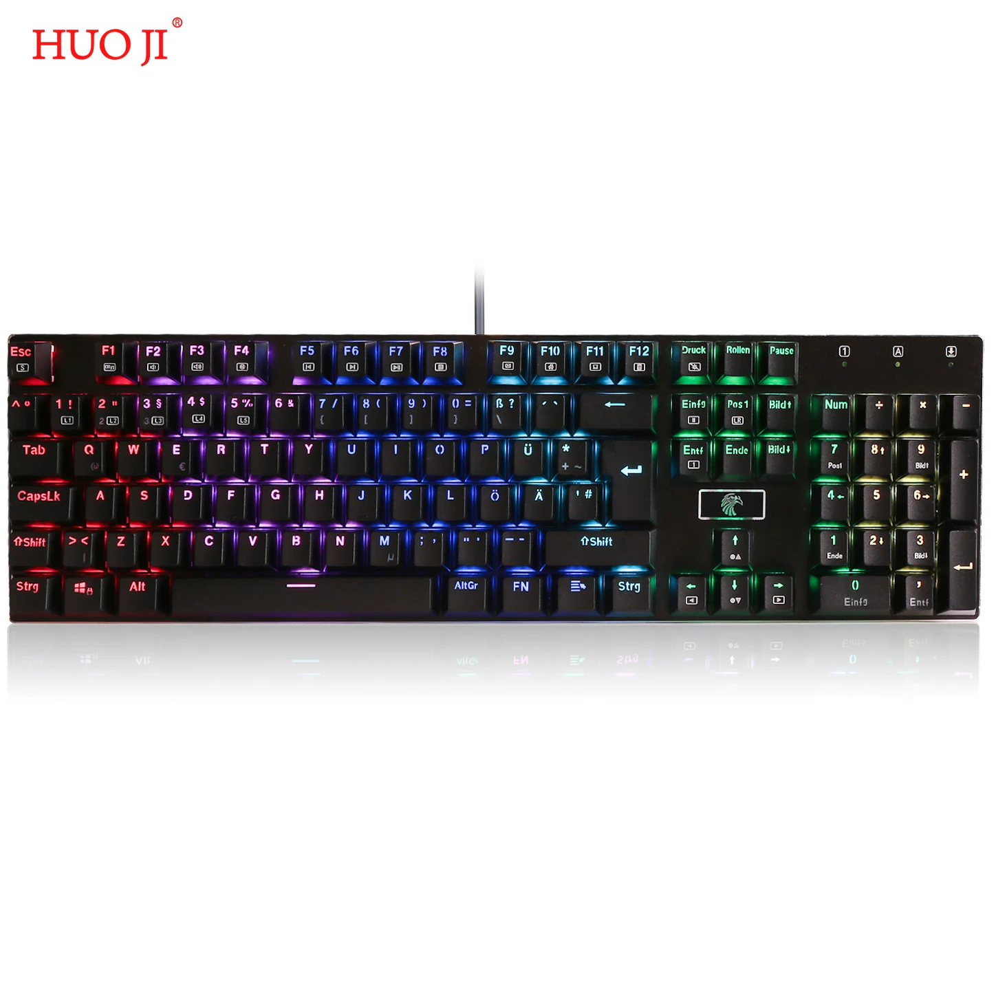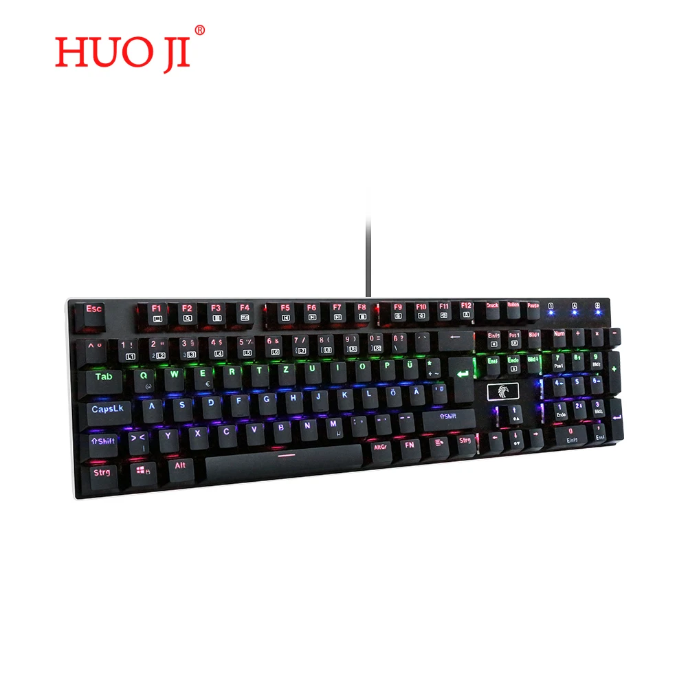 Механическая игровая клавиатура HUO JI Z88 RGB, программируемая Водонепроницаемая клавиатура с RGB-подсветкой и синим переключателем, 104 клавиш, защита от фиктивных нажатий, для ПК геймеров