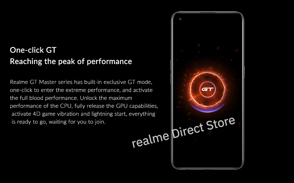Серия Realme GT Master имеет встроенный эксклюзивный режим GT, один клик, чтобы войти в экстремальную производительность, активировать полную производительность крови. Разблокируйте максимальную производительность процессора, полностью отпустите возможности графического процессора, активируйте 4D игру вибрации и молниеносного запуска, все готово к работе, ожидая, когда вы присоединитесь.