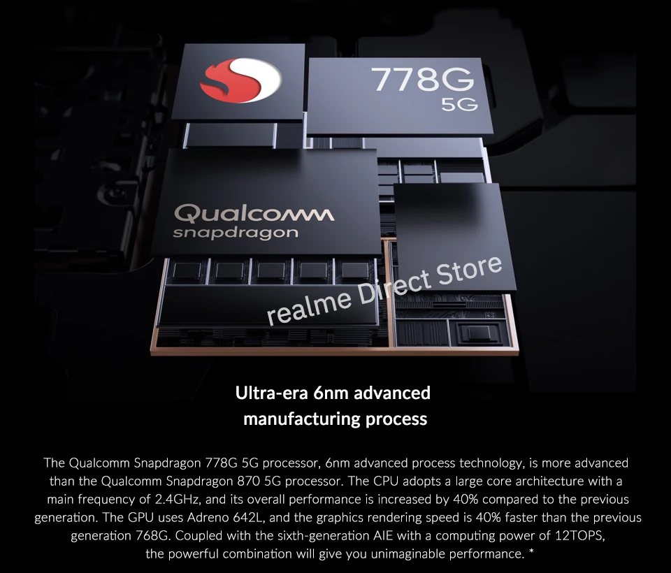 Процессор Qualcomm Snapdragon 778G 5G, 6 нм передовые технологии процесса, более продвинутый, чем процессор Qualcomm Snapdragon 870 5G. В Процессор принимает большое ядро архитектура с основная частота 2,4 ГГц, и его общая производительность увеличивается на 40% по сравнению с предыдущего поколения. Графический процессор использует Adreno 642L, а скорость графического перевода на 40% быстрее, чем у предыдущего поколения 768G. В сочетании с AIE 6-го поколения с вычислительной мощностью 12 топов, Мощная комбинация даст вам невообразимые показатели *.