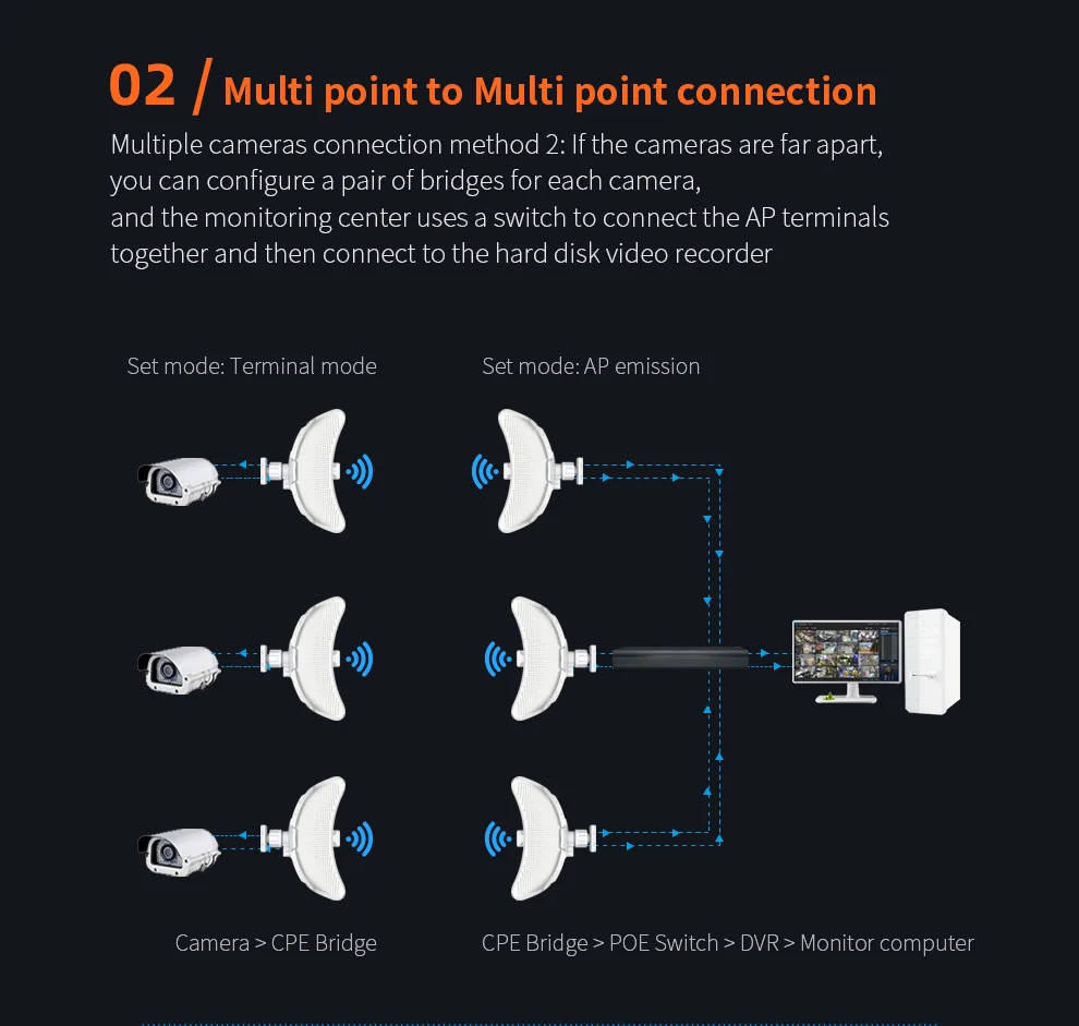 Открытый беспроводной мост/CPE, 25 км Дальняя передача