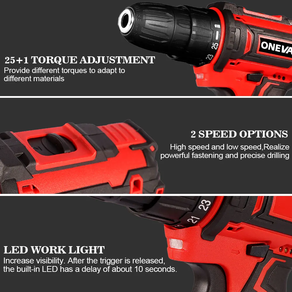 -Сверхмощная беспроводная дрель, обеспечивает до 32-40N.m крутящего момента и 1300-1400 об/мин скорости.-Литий-ионный аккумулятор высокой емкости 1500 мАч, обеспечивает более длительное время работы и большую мощность.-1/2 "БЕСКЛЮЧЕВОЙ сверлильный патрон для быстрой и простой замены бит, удерживая до 10 мм бит.-25 + 1 муфта управления, обеспечивает 25 режимов крутящего момента и дрели для различных применений.-Управление переменной скоростью двойного диапазона для точного регулирования скорости, предотвращает зачистки винтов.-Светодиодный рабочий светильник, обеспечивает освещение в темных местах во время работы.-Эргономичная ручка обеспечивает комфорт и контроль.-Водонепроницаемость, падение, мощность утечки.-ECP: устройство защиты аккумулятора для предотвращения перегрузки батареи, перегрева и глубокого разряда.