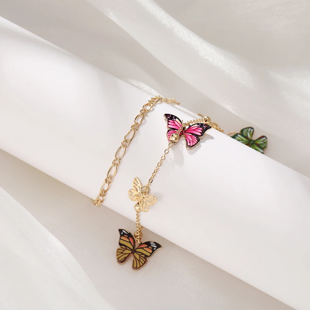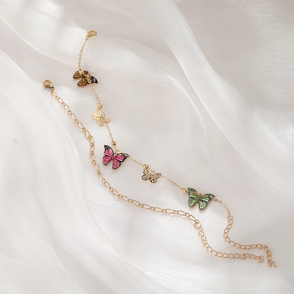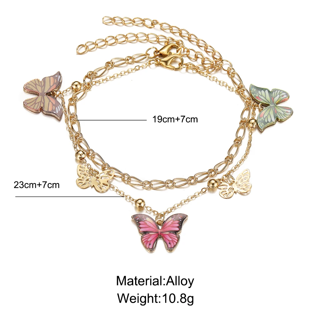 Браслет на лодыжку Женский, с бусинами и бабочками, Летний Пляжный браслет в стиле бохо