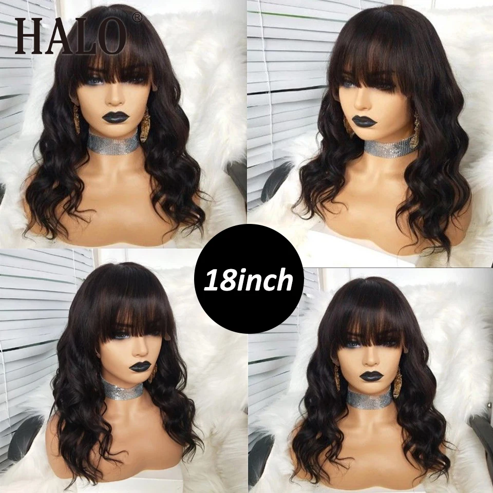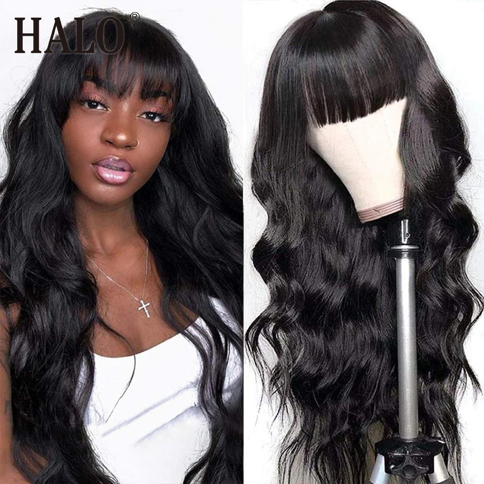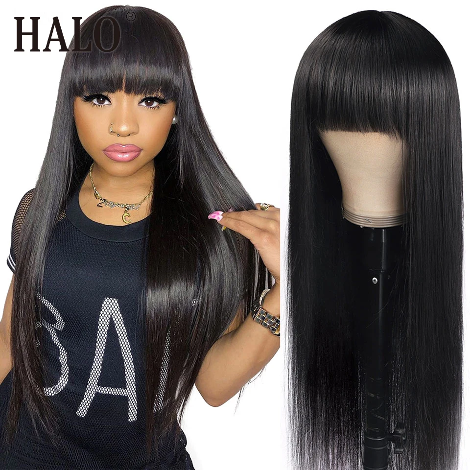 Парик из 100% человеческих волос с челкой, парики из человеческих волос с волнистыми волосами для черных женщин, дешевые бразильские Прямые длинные парики с челкой