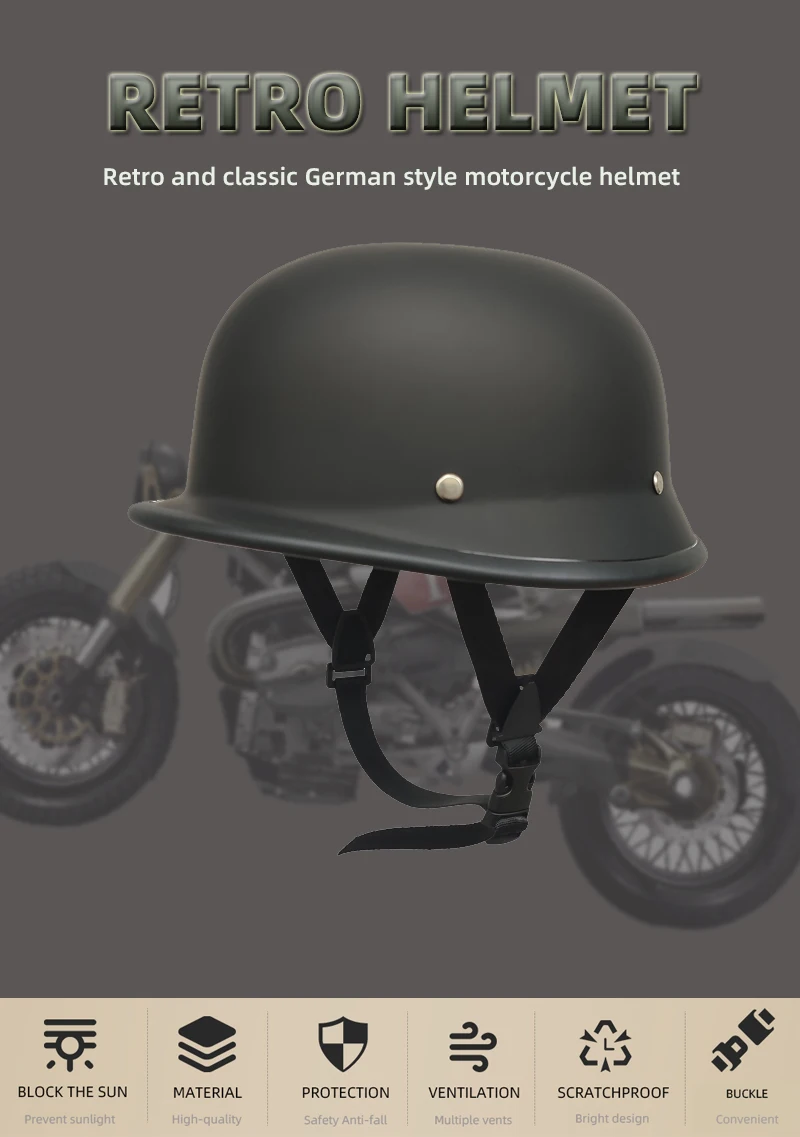 Мотоциклетный полушлем в стиле ретро, классический городской скутер, винтажный легкий водонепроницаемый в стиле милитари, для лета