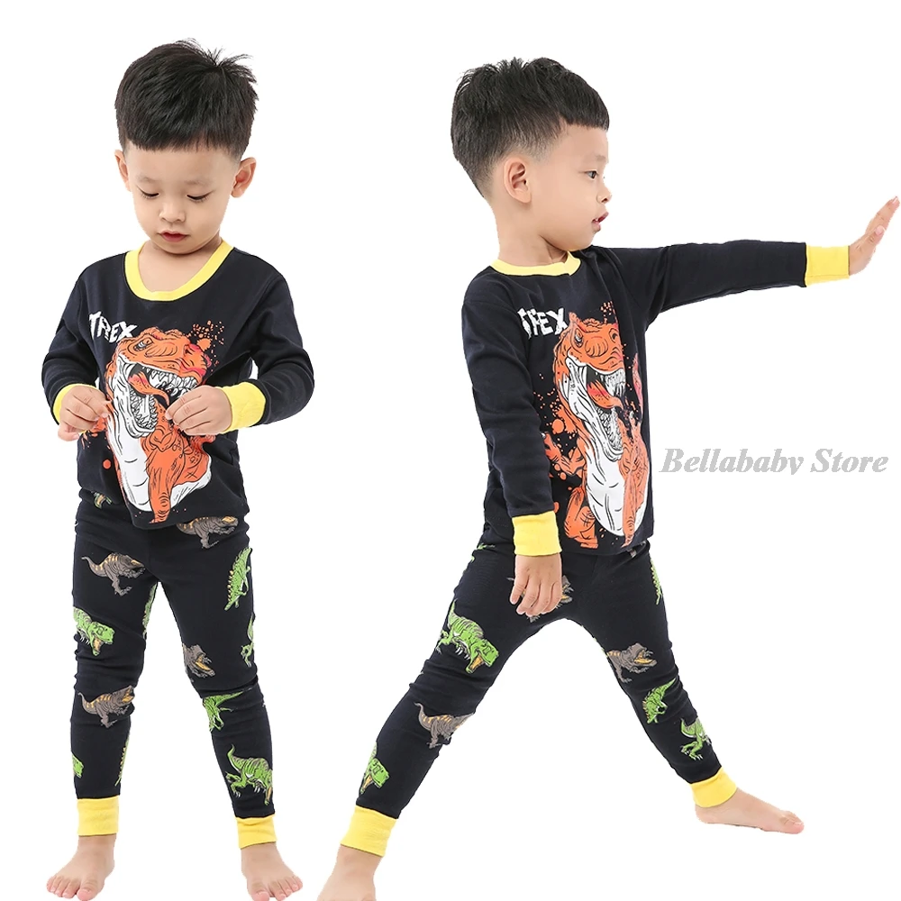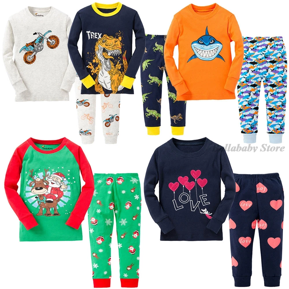 Детская одежда для сна для мальчиков, весенние хлопковые комплекты для маленьких девочек, детские пижамы с динозаврами, акулами, пижамы для мальчиков, детская одежда для сна, подростковая одежда