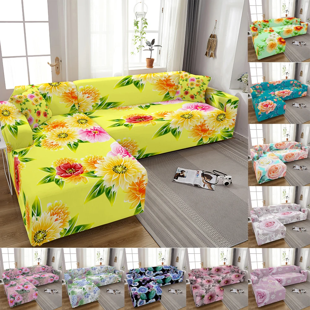 Чехол для дивана L-образной формы с 3D цветочным принтом, эластичное покрытие для гостиной, чехол для секционного дивана 3 места