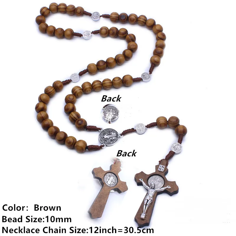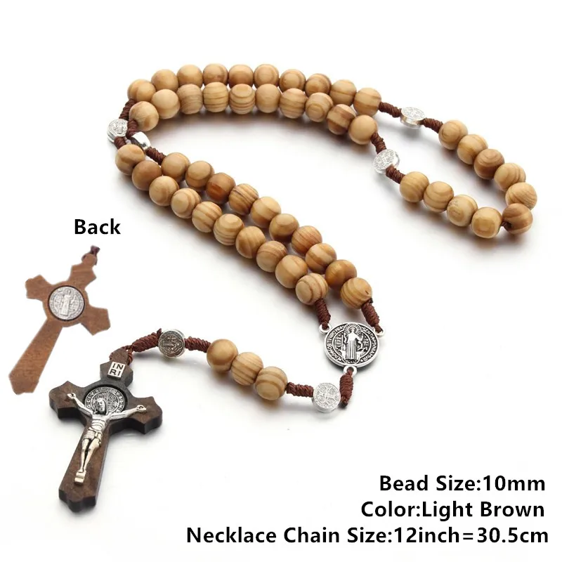 Ожерелье из коричневого дерева с крестом, религиозное украшение с и...