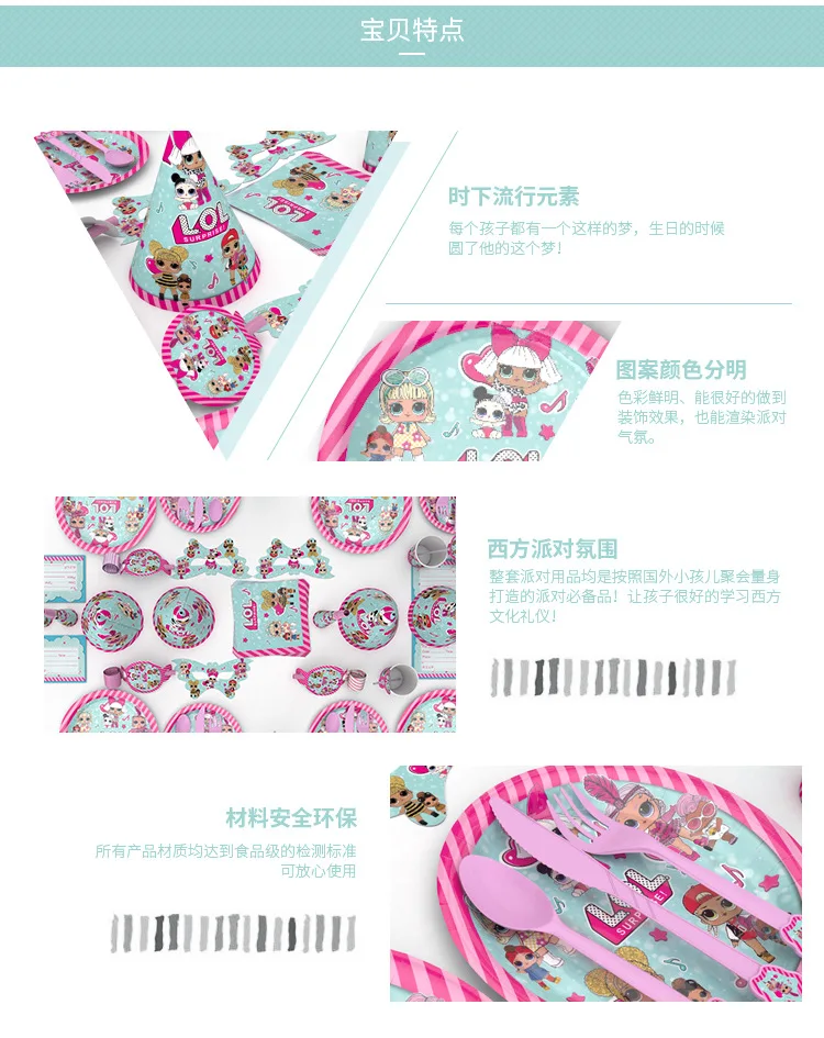 LOL сюрприз куклы день рождения тема украшения поставки Праздничная чашка тарелка ложка торт стенд мероприятие событие Дети Подарки