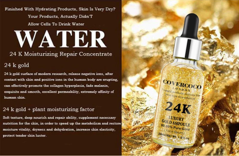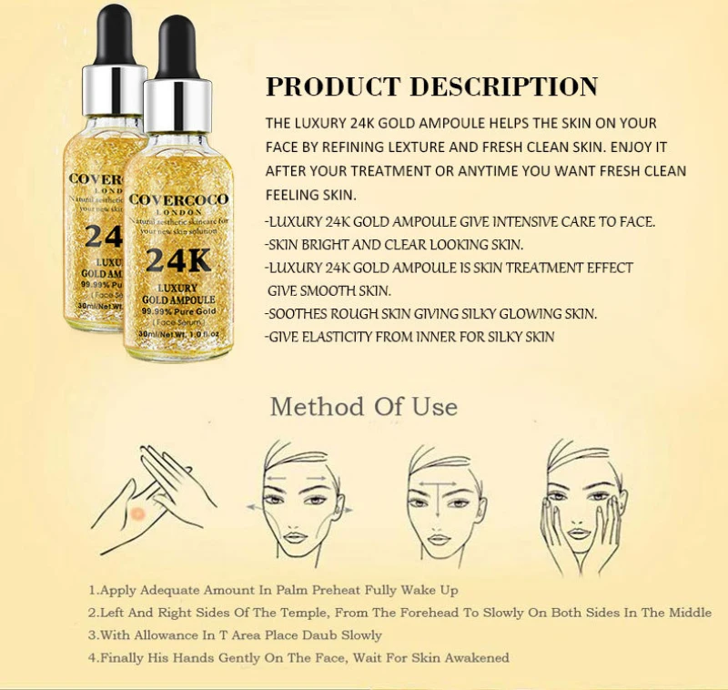 Роскошная золотая ампула 24K помогает коже на лице, улучшая лексику и свежую чистую кожу. Наслаждайтесь этим после лечения или в любое время вы хотите свежее чистое ощущение кожи.