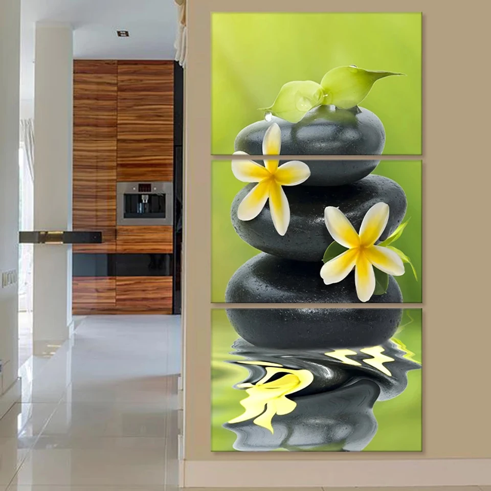 Современная 3 панели SPA дзен камень цветок алмазная живопись вышив...