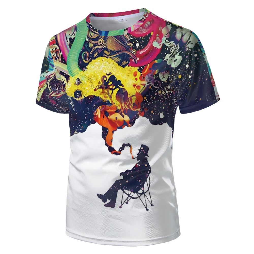 Новая летняя мужская футболка с 3D-принтом, Повседневная футболка с коротким рукавом и принтом, модная цветная футболка с принтом брызг-чернил, мужская одежда