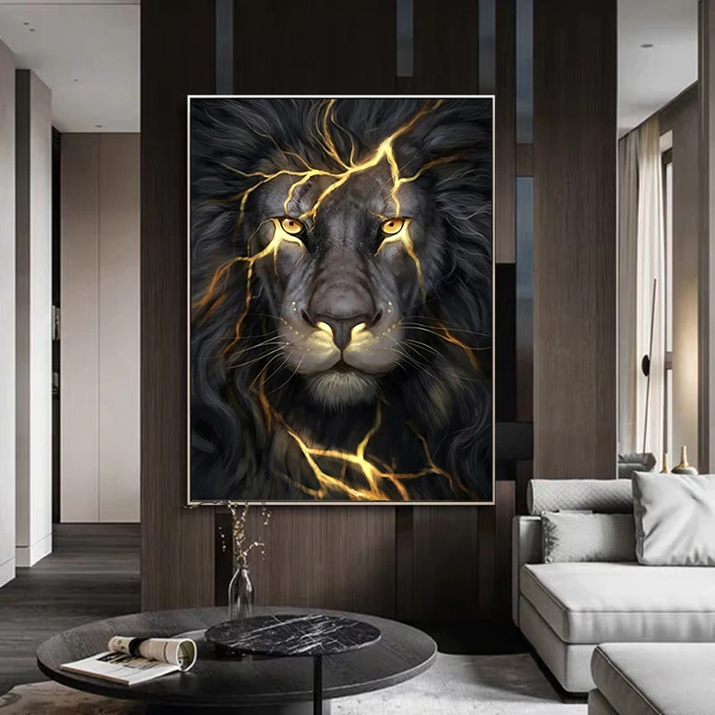 Постер с изображением черного золота дикого льва, животного, холст, картина на стену, художественные принты, интерьер гостиной, украшение для дома, Декор для дома
