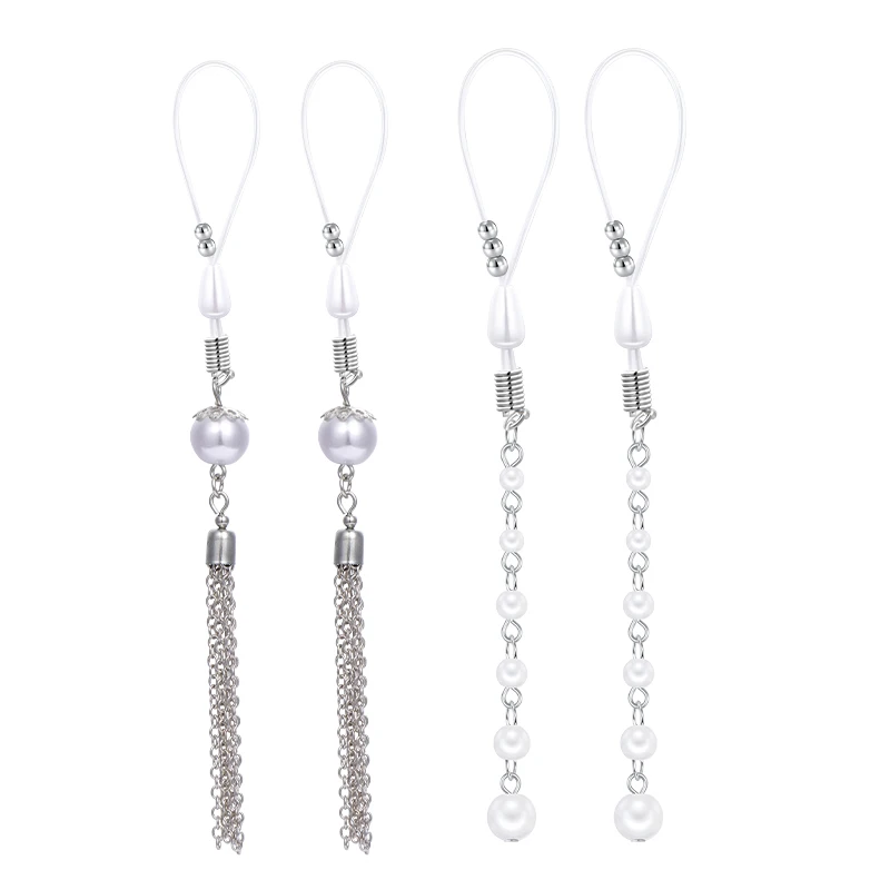 Регулируемый поддельный пирсинг для соски, кольца с подвеской, белые жемчужины, кисточки, зажимы для сосков, ювелирные наборы