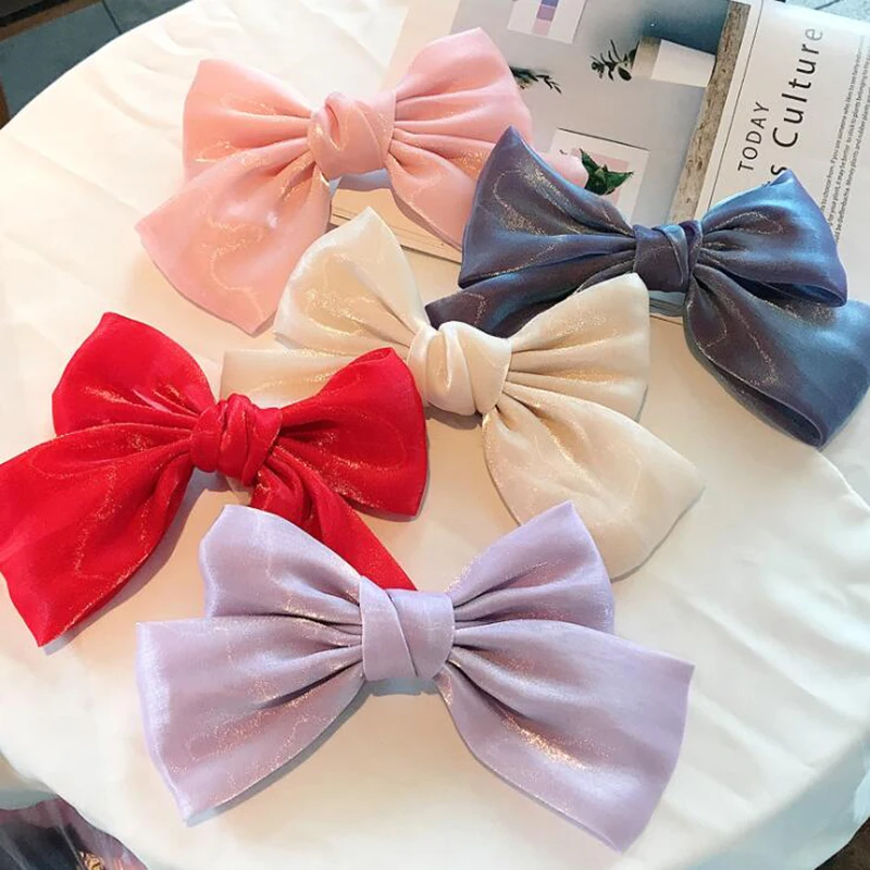 Модные однотонные заколки для волос с большим бантом, милые популяр...