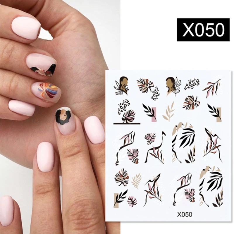 Наклейки для ногтей с черными листьями, цветами и мраморным узором