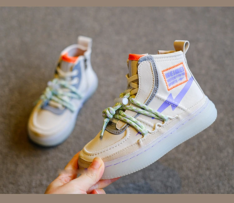 Новые осенние детские спортивные кроссовки для маленьких мальчиков; Брендовая обувь с высоким берцем; Детские мягкие повседневные кроссовки; Бежевые кроссовки для девочек