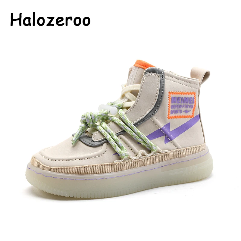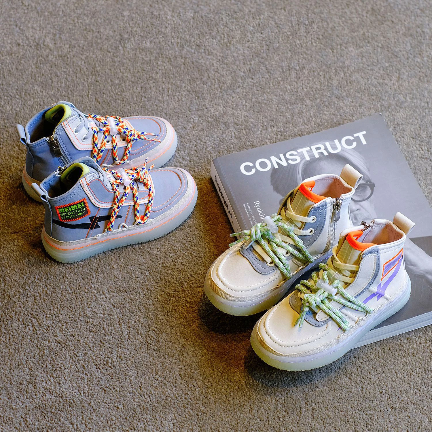 Детские кроссовки для мальчиков и девочек, брендовые высокие кеды, мягкие повседневные, массивные кеды, бежевые, на осень