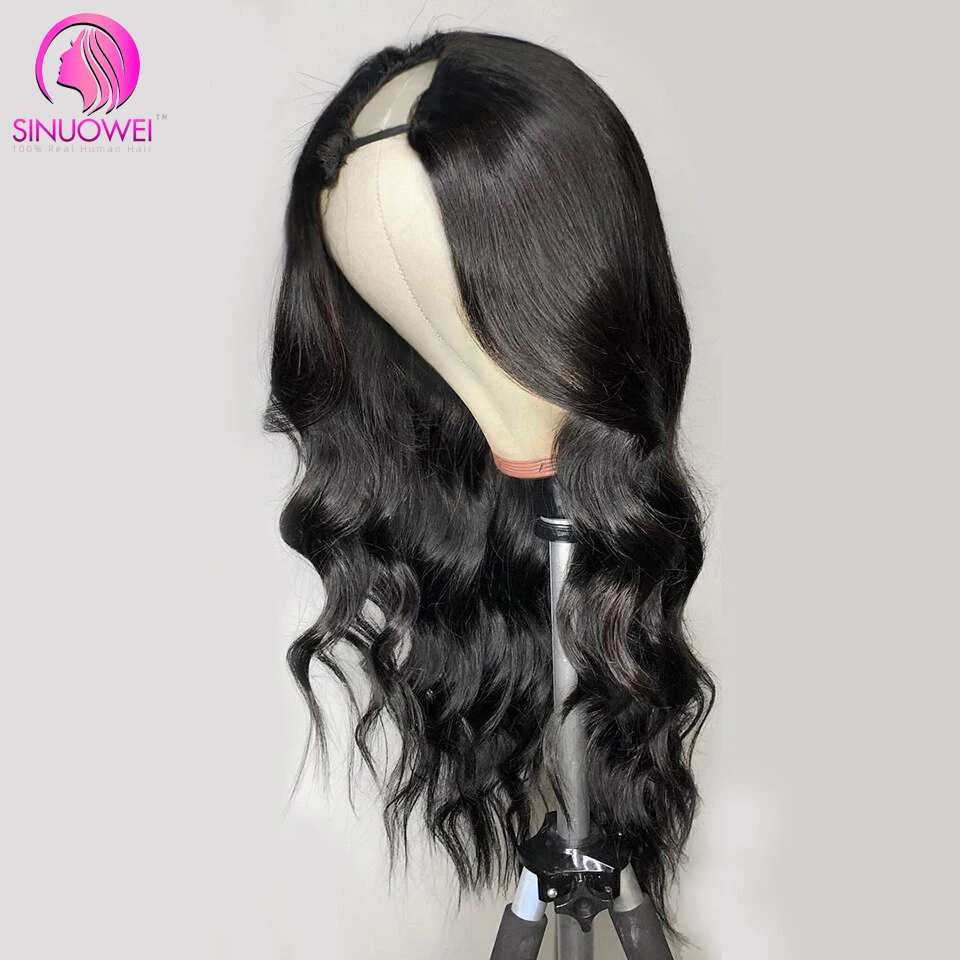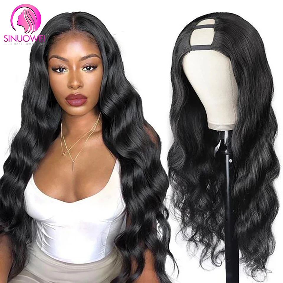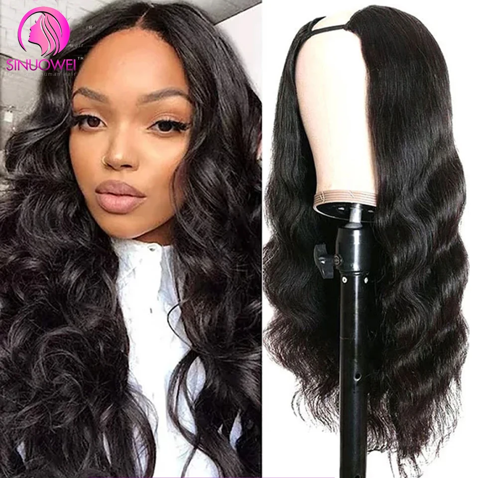 Парики Sinuowei с U-образной волной, европейские парики из человеческих волос для женщин, без клея, средней части, U-образный парик, плотность 150%