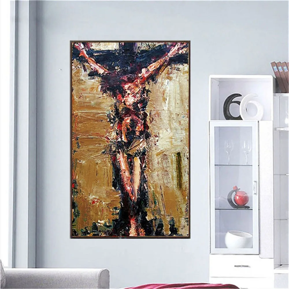 Современная абстрактная картина маслом, христианское настенное искусство, распятие, холст, живопись, религия, настенные картины для гостиной, домашний декор