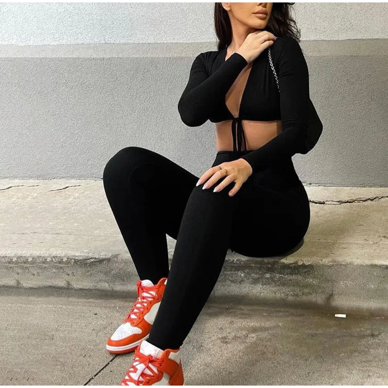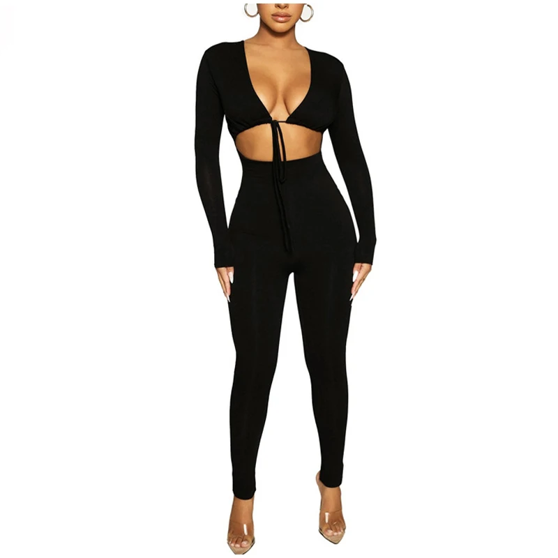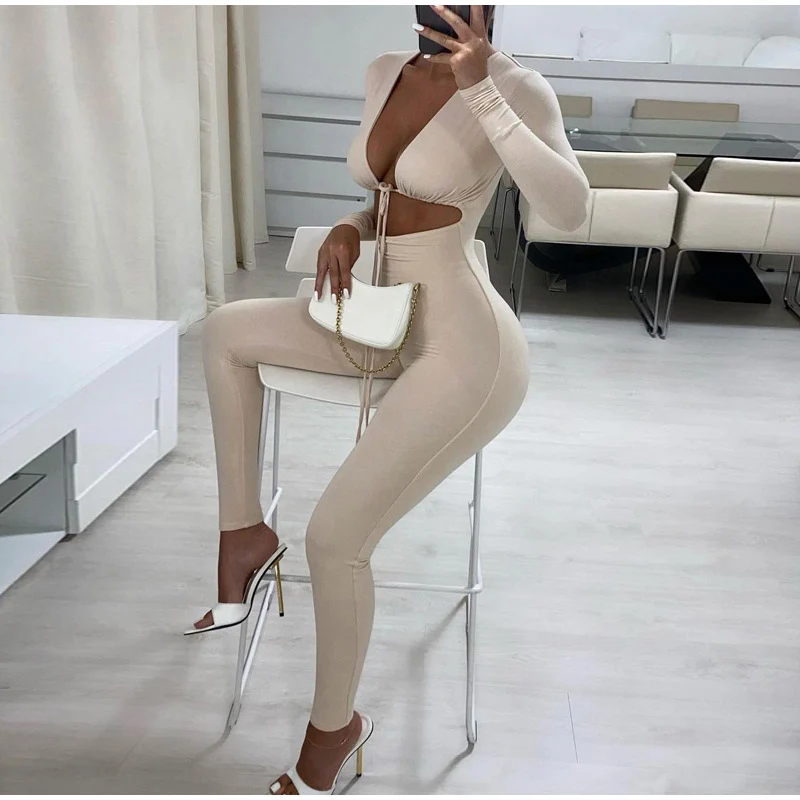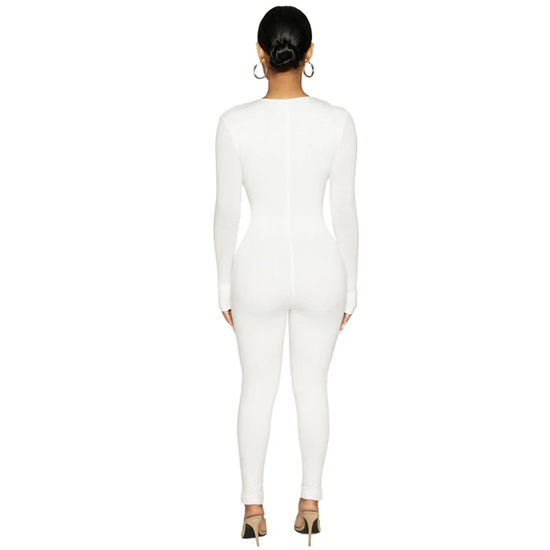 Женский комбинезон на шнуровке, повседневный облегающий белый комбинезон с длинным рукавом, 2021