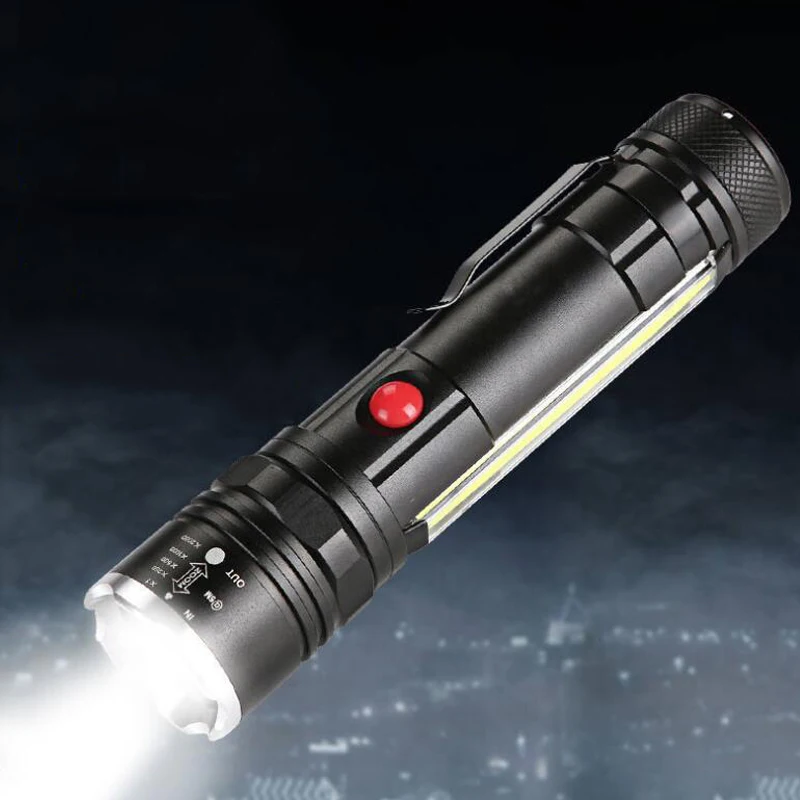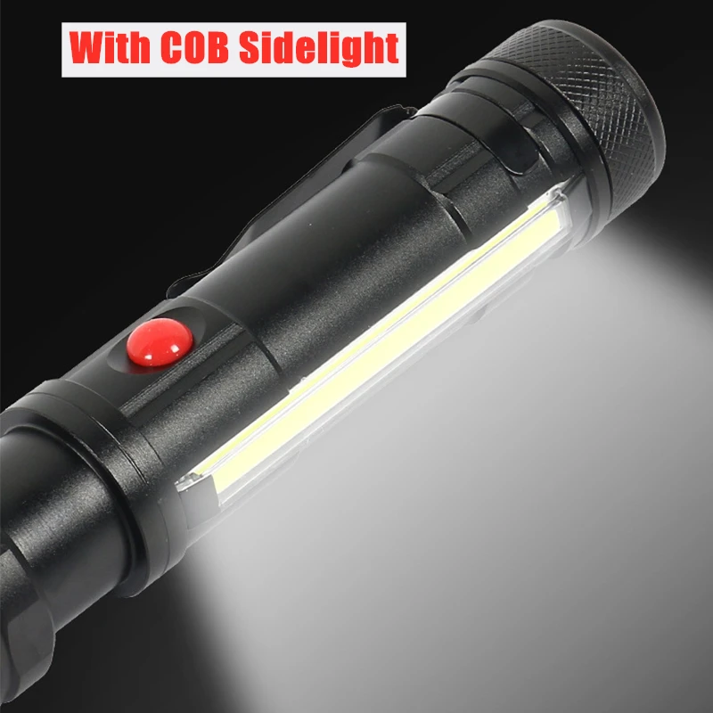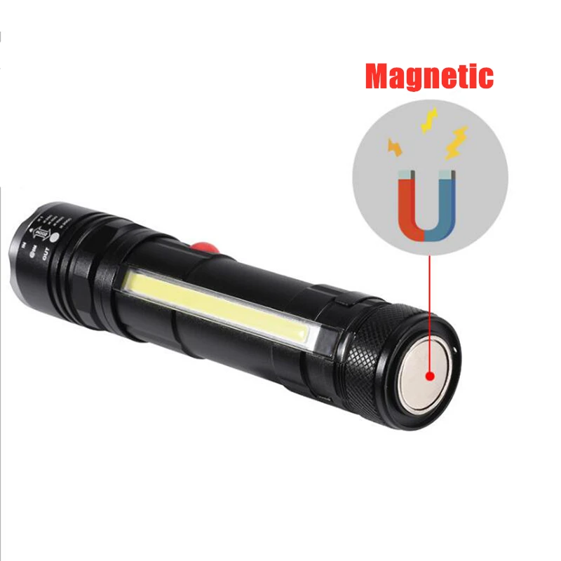 Светодиодный фонарь, перезаряжаемый тактический фонарь, магнитный с COB Sidelight, супер яркие ручные фонарики, питание от аккумулятора 18650, водонепроницаемый Карманный размер для пеших прогулок