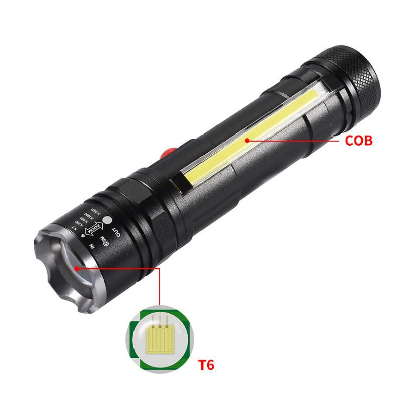 Светодиодный ные фонарики, перезаряжаемый Магнитный фонарик с COB-матрицей, суперъяркие фонарики, фонарики с аккумулятором 18650, водонепроницаемые для пеших прогулок