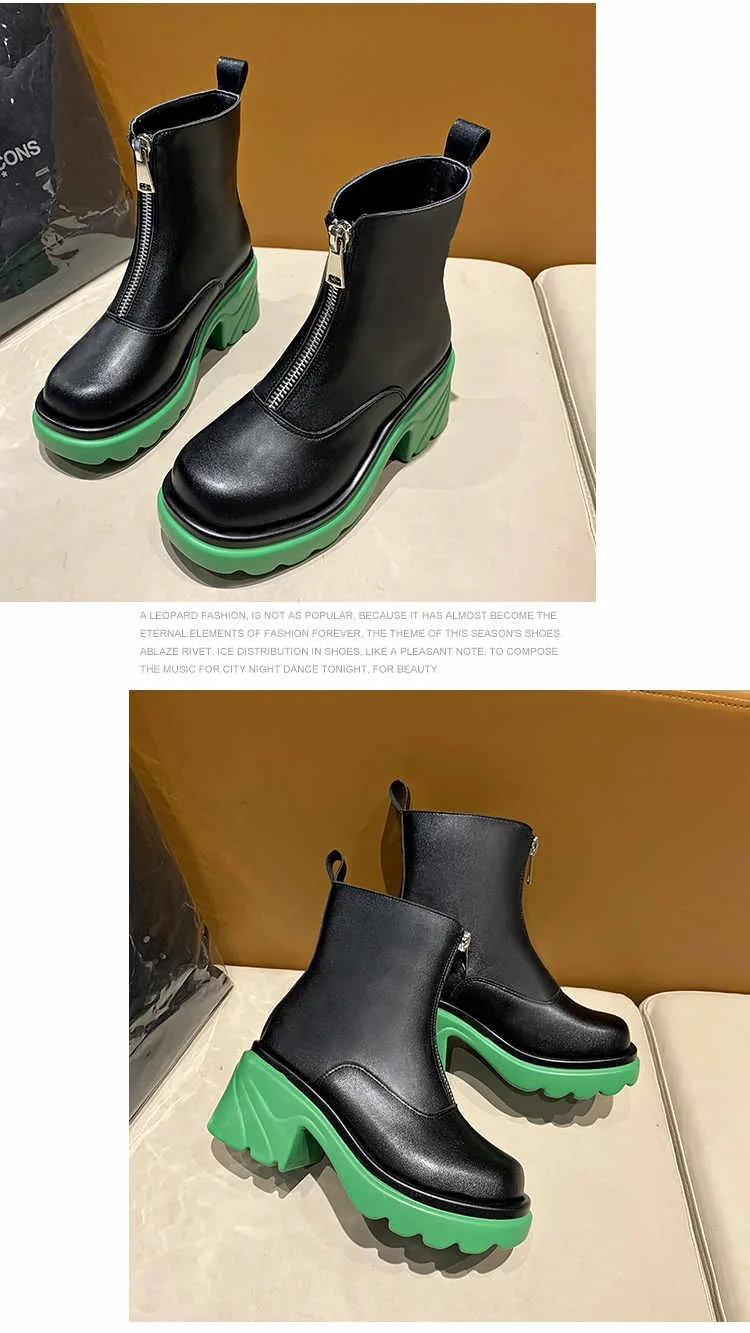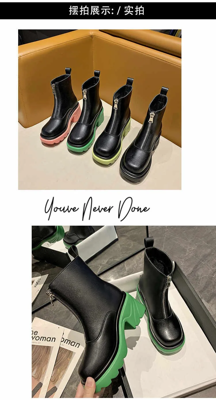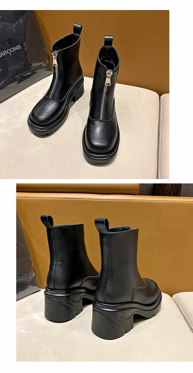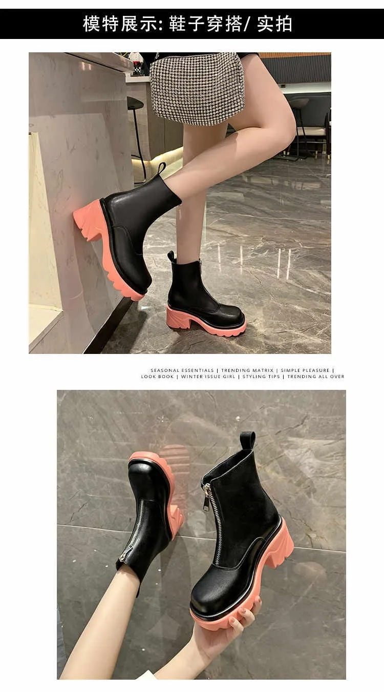 Женская модель, весенние брендовые дизайнерские ботинки челси на молнии спереди, ботинки на платформе, женские мотоциклетные ботинки