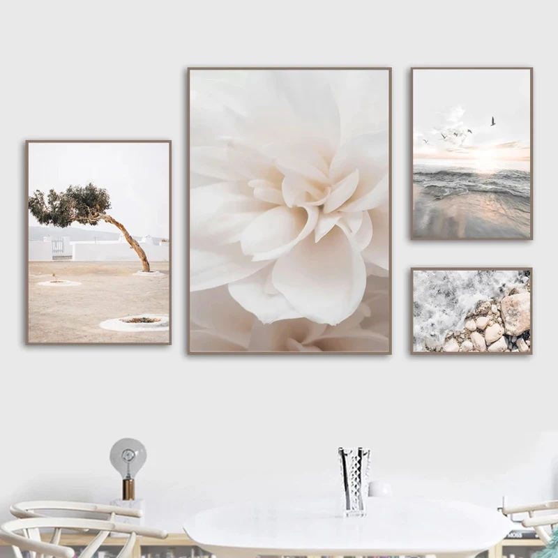 Пейзаж морской пейзаж закат на пляже Цветочное дерево Плакаты для девочек и принты Настенная живопись на холсте для украшения домашней комнаты