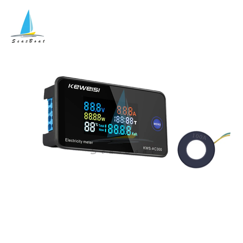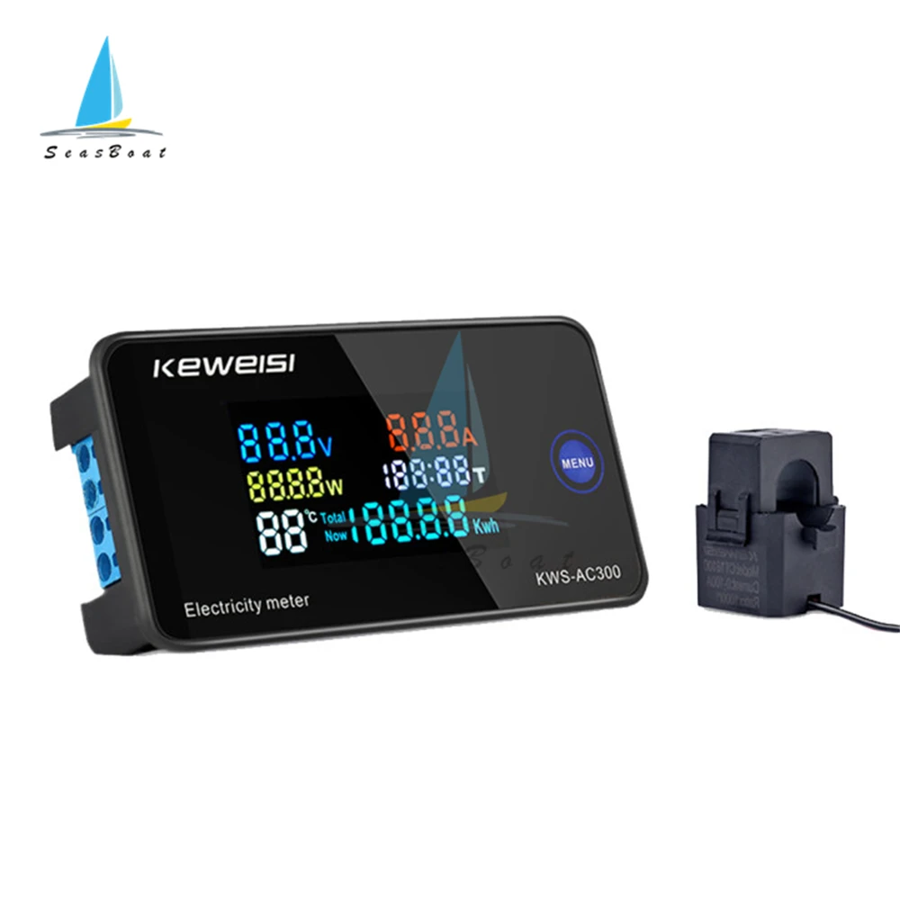 Вольтметр-амперметр переменного тока 50-300 В, ваттметр, измеритель мощности и энергии, СВЕТОДИОДНЫЙ Цифровой Электрический измеритель с функцией сброса температуры 0-а