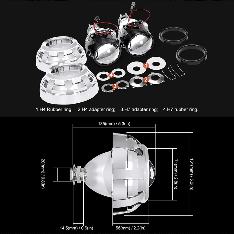 Характеристики: Bi-xenon проекторы объектива, предлагаем как дальнего, так и ближнего света функции.